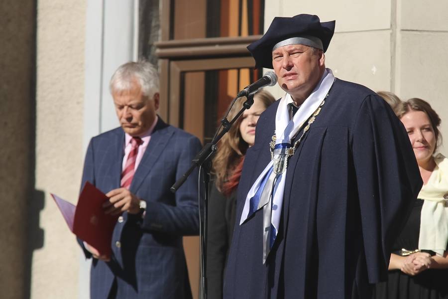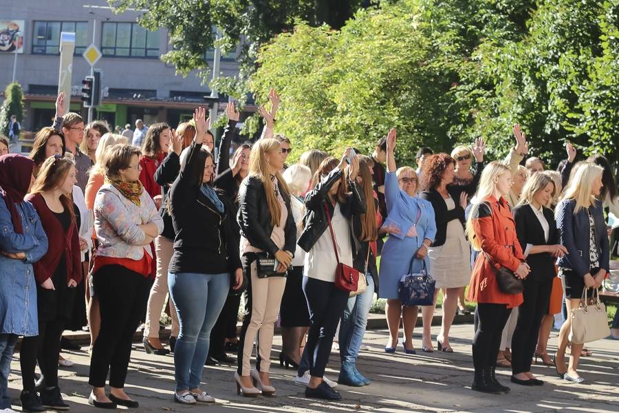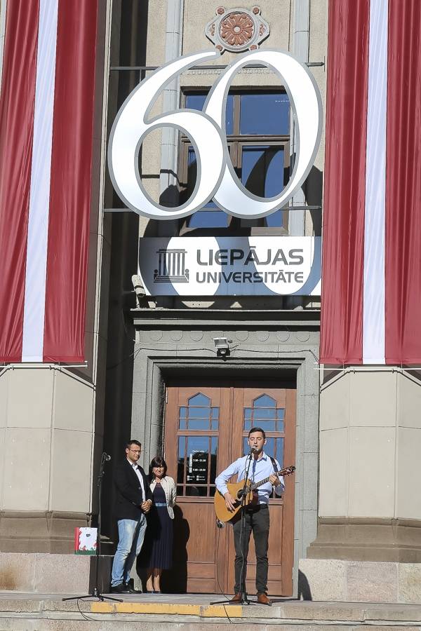 Šorīt pie Liepājas Universitātes tās studenti, mācībspēki un darbinieki pulcējās 1. septembra svinībās. Universitātei šis 1. septembris ir īpašs, jo mēneša otrajā pusē tiks atzīmēta Liepājas Universitātes 60 gadu jubileja. Tās centrālais pasākums 19. septembrī notiks Liepājas teātrī.