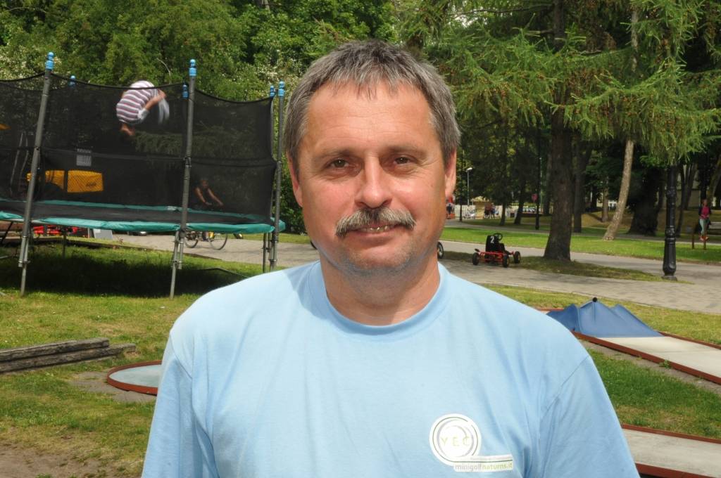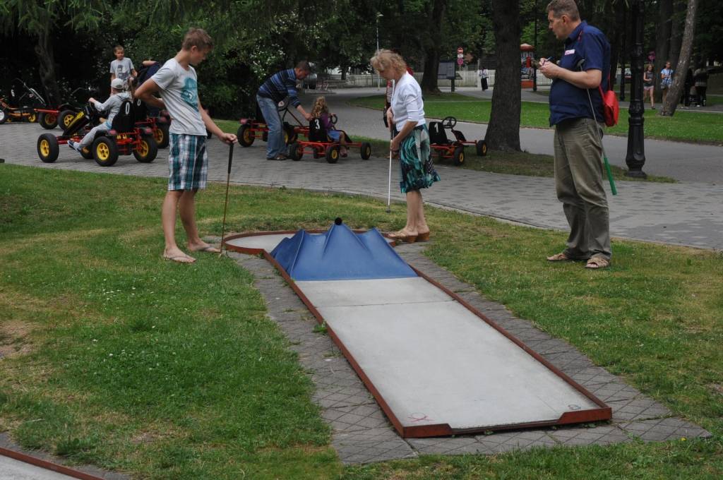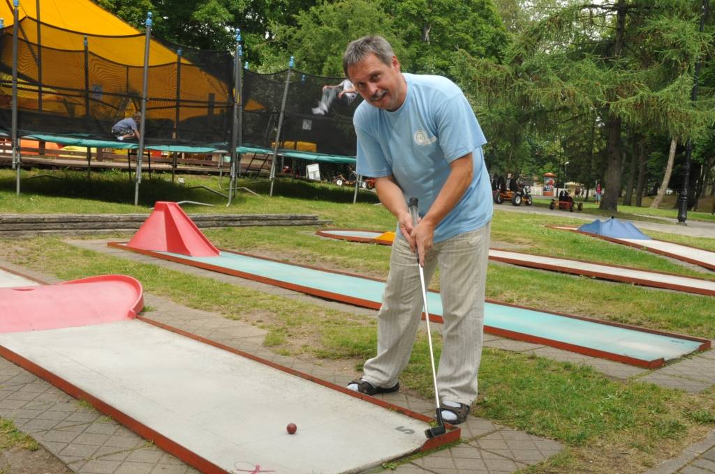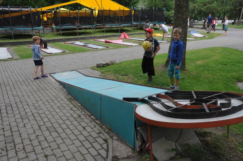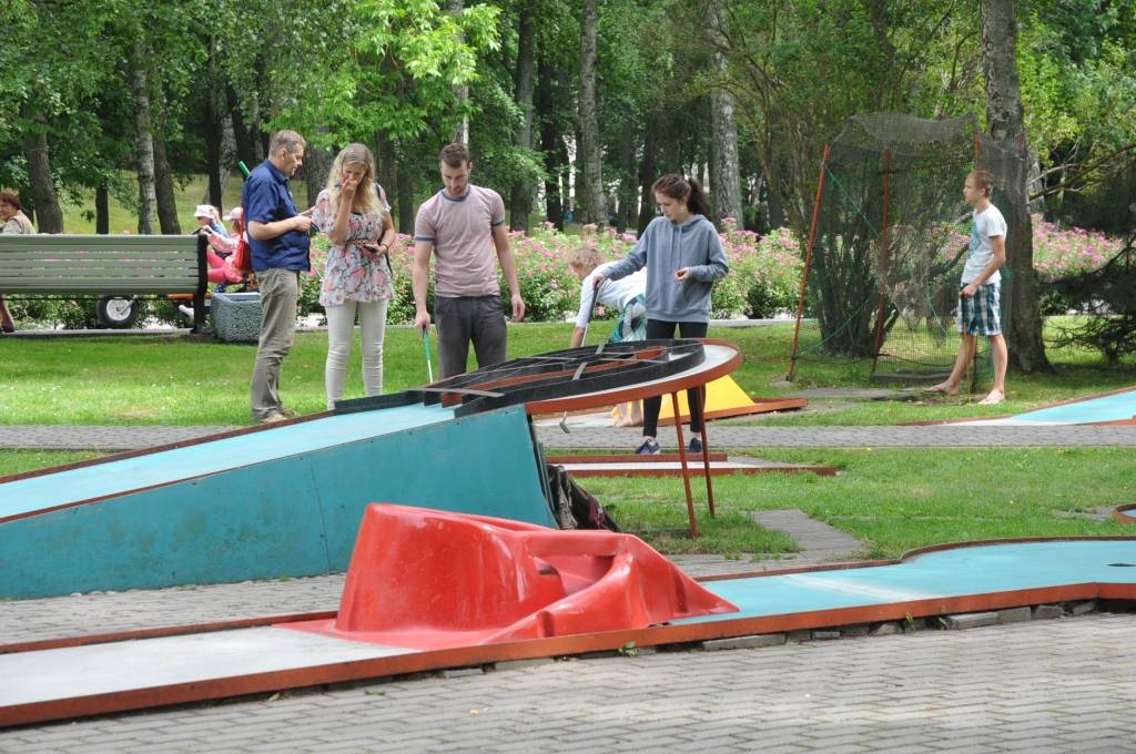 Patiesībā izrādās, ka Liepājā ir pat divi laukumu kompleksi, kur spēlēt minigolfu. Īpašnieks stāsta: “Mums ir āra laukumi Jūrmalas parkā, kuriem šogad apritēs 20 gadi. Tos mēs visu laiku cenšamies uzlabot un sakārtot. Un tad ar biedrību “Līva” nopirkām lietotus laukumus, ko paši arī salabojām, un novietojām Liepājas Olimpiskajā centrā. Ar lepnumu varu teikt, ka tie ir labākie minigolfa laukumi Latvijā, jo katru gadu martā rīkojam starptautisku turnīru “Liepāja Open”, un, ja ārzemju spēlētāji šajos laukumos var uzsist 18 punktus (šajā spēlē mazāk punktu ir labāk), tad zinu, ka laukumi ir ļoti labi!”.