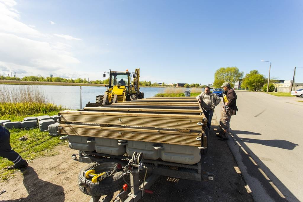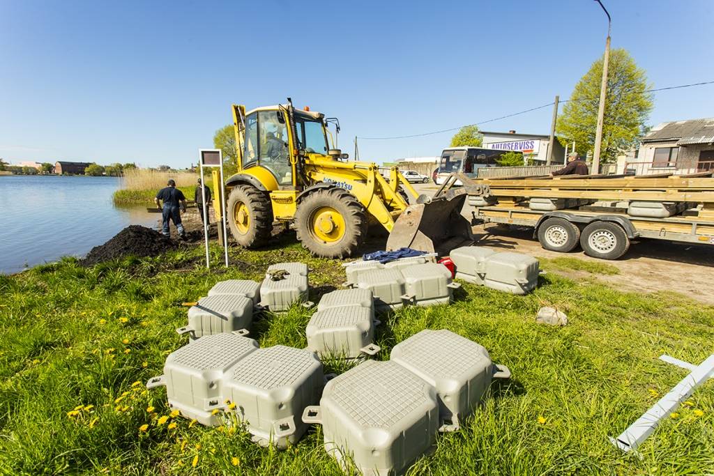 Realizējot programmas “EST–LAT” projektu “Riverways”, arī Liepājas ezera krastā top jauna laivu piestātne.