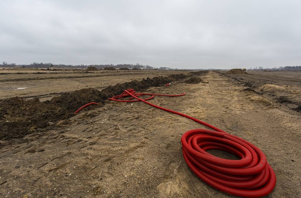 Liepājas lidostā notiek skrejceļa izbūves darbi.
