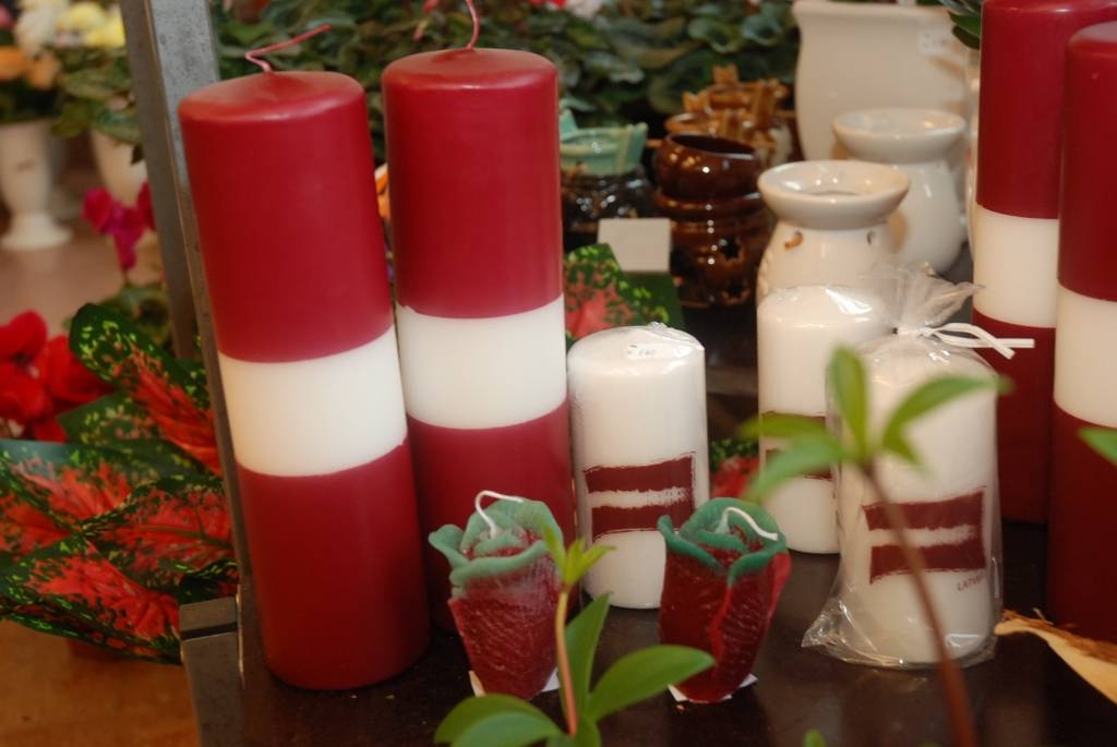Veikalā “Grobiņas zieds” Graudu ielā, Liepājā ir ļoti skaistas sveces nacionālās krāsās. Dažādu formu un lieluma svec es piesaista uzmanību, jo sevišķi tās, kas līdzinās auseklīšiem. Misēklis, nu nav tas “Auseklis”.