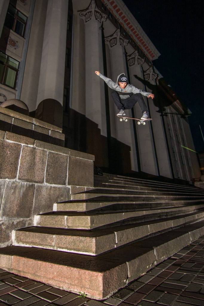 Nodarbības norisinās jauniešu attīstības programmas „Go Beyond Liepāja” dalībnieka Māra Dejus individuālā projekta „Skeitborda kopienas izveide Liepājā” ietvaros.