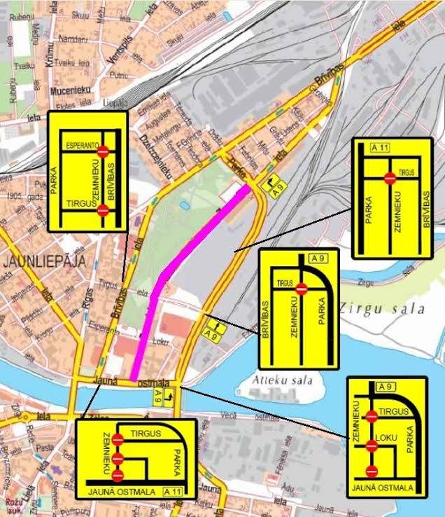 No 24. marta līdz 9. maijam tiek slēgta satiksme Zemnieku ielā, posmā no Jaunās ostmalas līdz Tirgus ielai. Savukārt no 27. marta tiek slēgta satiksme Zemnieku ielā, posmā no Tirgus ielas līdz Parka ielai. Aicina autovadītājus būt īpaši uzmanīgiem un sekot ceļa zīmēm, informē pašvaldībā.