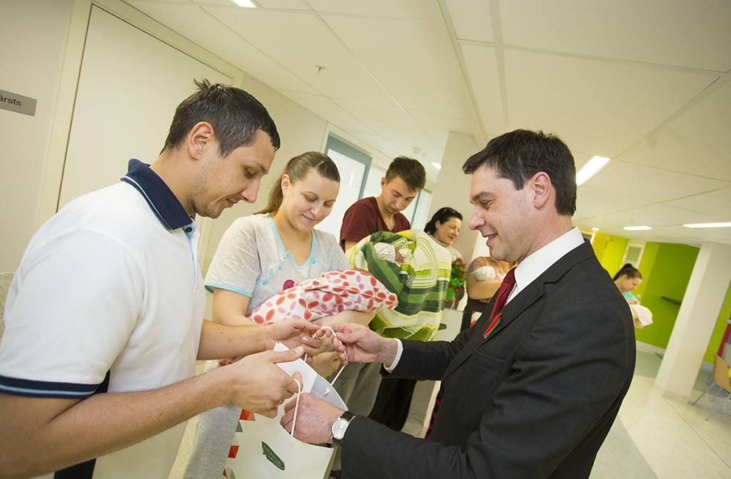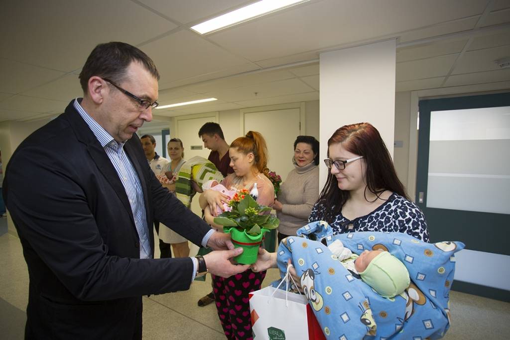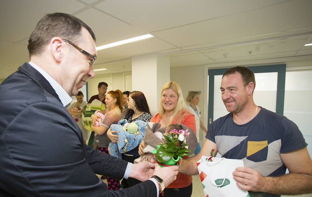 19.martā jaundzimušo mazuļu vecākus sveica Liepājas domes priekšsēdētāja vietnieks Gunārs Ansiņš un SIA “Liepājas Reģionālā slimnīca” valdes priekšsēdētājs Edvīns Striks. Katra ģimene dāvanā no pašvaldības saņēma ziedus, mīksto rotaļlietu lauvēnu, dāvanu karti aptiekā, kā arī puisīši – savu pirmo ap kaklu liekamo tauriņu ar Liepājas krāsas lentīti, bet meitenītes – galvas lenti ar Liepājas simboliku.