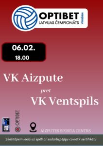 Svētdien, 6. februārī, pulksten 18 Aizputes sporta centrā “Optibet” Latvijas volejbola čempionātā “Aizpute” spēlēs pret “Ventspili”.