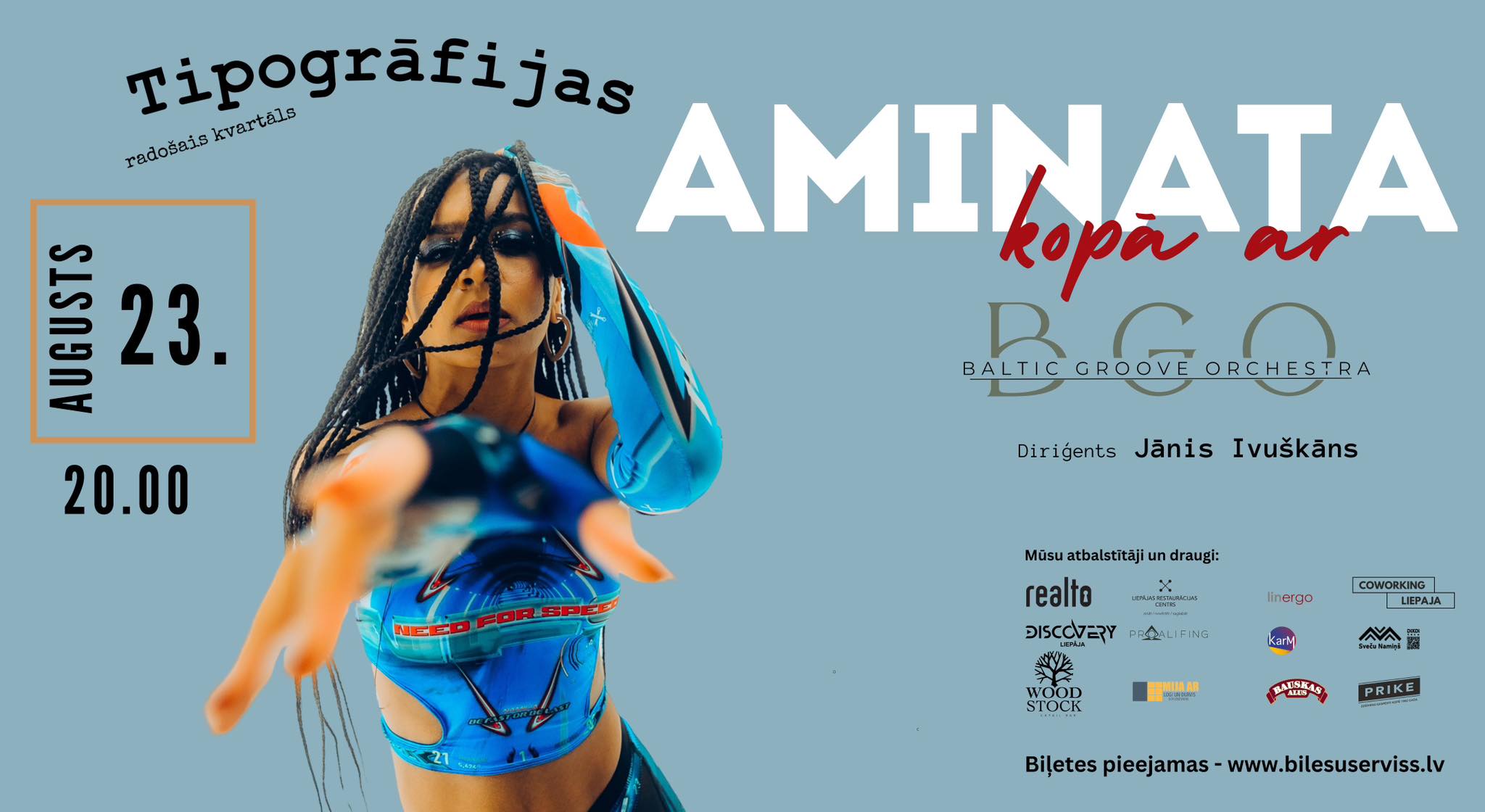 Piektdien pulksten 20 Liepājā Tipogrāfijas radošā kvartāla iekšpagalmā notiks Aminatas un “Baltic Groove Orchestra” koncerts.