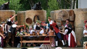 Priekules dramatiskais kolektīvs piektdien, 18. augustā, pulksten 21 Grobiņas pilsdrupās spēlēs dziesmu spēli 16 ainās “Vella kalpi Grobiņā”.
