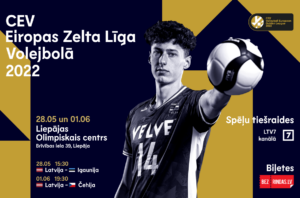 28. maijā pulksten 15.30 Liepājas Olimpiskajā centrā Eiropas Zelta līgas spēle volejbolā: Latvija pret Igauniju.