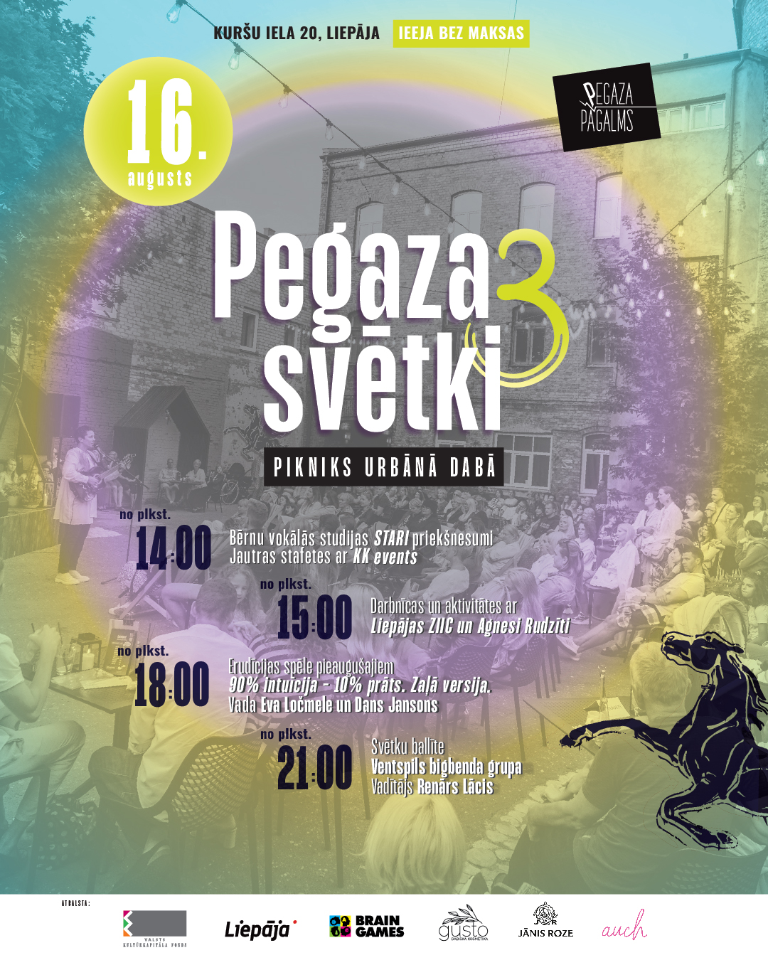 Sestdien, 16. augustā, Liepājas kultūrvieta “Pegaza Pagalms” atzīmēs savu trešo jubileju un par tradīciju kļuvušie Pegaza svētki notiks ar īpašu tematisko ievirzi – “Pikniks urbānā dabā”.
