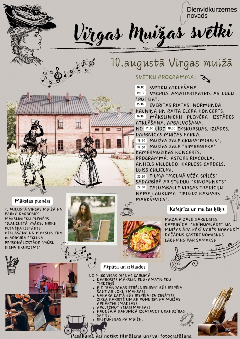 Sestdien, 10. augustā, no pulksten 14 atzīmēs Virgas muižas atdzimšanas svētkus, kas būs krāšņi un dažādiem notikumiem piepildīti