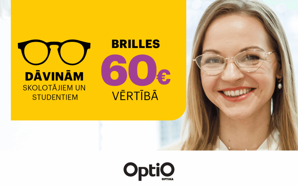 Lai atbalstītu redzes veselību izglītības sezonas sākumā, optikas veikalu tīkls OptiO arī šogad turpina savu sociālo iniciatīvu un dāvina brilles 60 eiro vērtībā visiem studentiem un pedagogiem. Šī iniciatīva jau iepriekš guvusi lielu atsaucību un kļuvusi par nozīmīgu atbalstu simtiem cilvēku visā Latvijā.