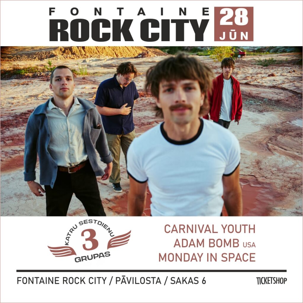 Koncertu sezona “Fontaine Rock City” Pāvilostā tiks atklāta jau 28. jūnijā kopā ar grupu Carnival Youth un īpašajiem viesiem – Adam Bomb (ASV) un Monday in Space. Kā jau katru gadu, arī šogad pasākuma teritorijā būs pieejami bāri un ēdināšana, viesnīcas “Butterfly House” mājīgie numuriņi, kā arī telšu pilsētiņa, kur brīvi varēs baudīt vasaras festivālu garu.