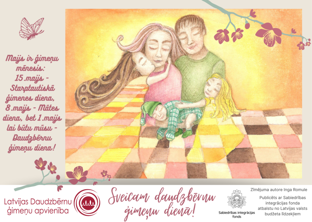 Negaidot uz valstiskiem lēmumiem, Latvijas daudzbērnu ģimeņu apvienība 1.maijā sumina visas kuplās ģimenes pašpasludinātajā Daudzbērnu ģimeņu dienā! Ar A/S “Pasažieru vilciens” līdzdalību Apvienība sveiks vilcienu rīta reisu pasažierus visos Latvijas maršrutos, kas ar Goda ģimenes karti apliecinās piederību daudzbērnu ģimeņu pulciņam. Tāpat aicinām visus Latvijas iedzīvotājus nodot mīļus sveicienus katrai sev zināmai daudzbērnu ģimenei! Piezvani, aizraksti īsziņu vai nosūti digitālo kartiņu, ko vari lejuplādēt: kustiba3plus.lv.