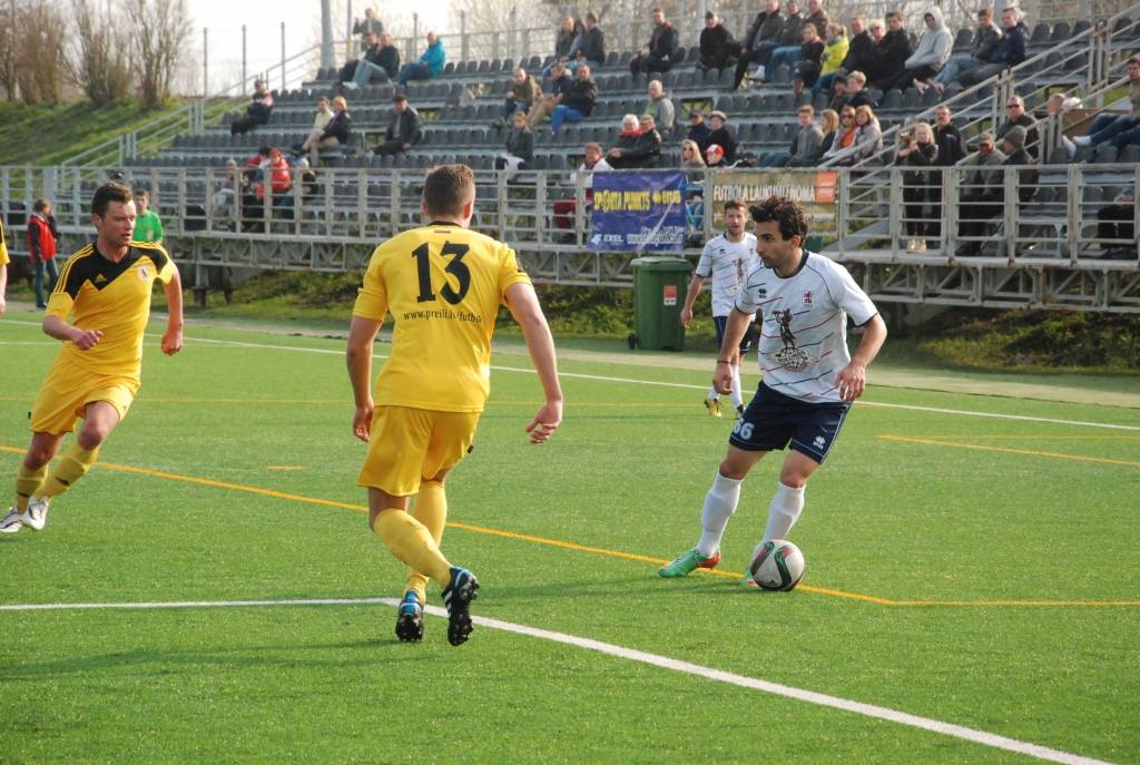 Liepājas futbola komanda “1625 Liepāja” sestdien, 25. aprīlī, Liepājas stadiona “Daugava” rezerves laukumā tika pie trešās uzvaras “Komanda.lv” Latvijas futbola čempionāta pirmajā līgā, ar 4:0 (0:0) sagraujot “Preiļu BJSS”.
