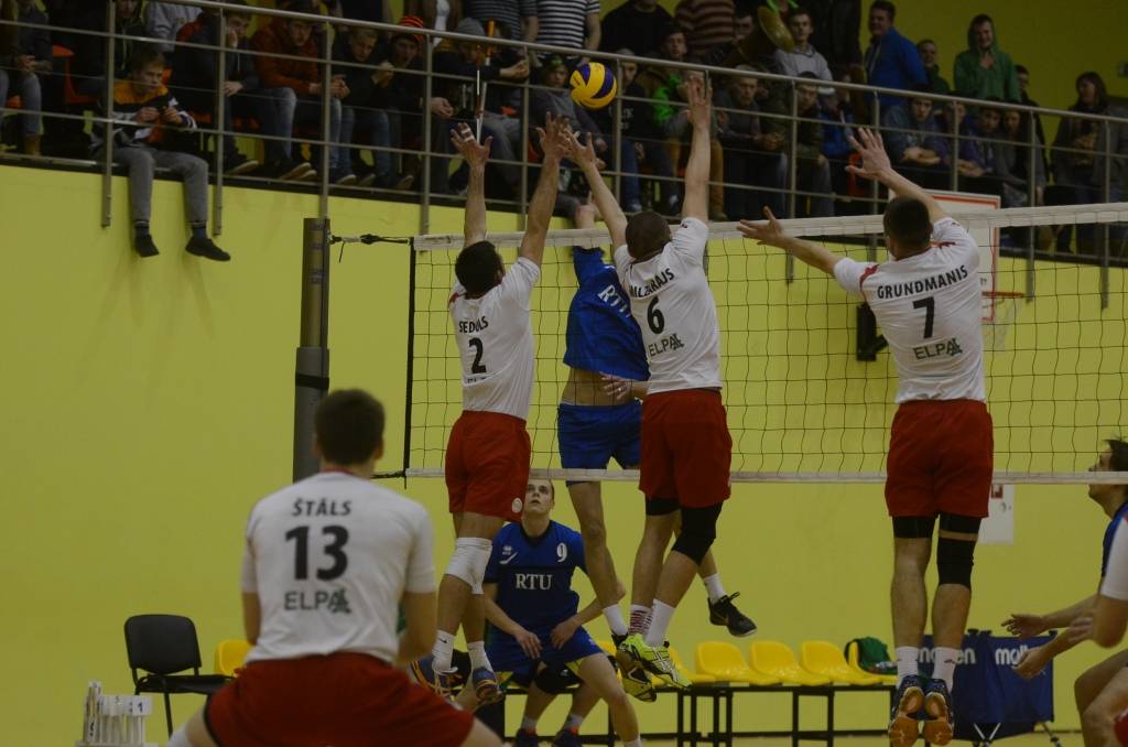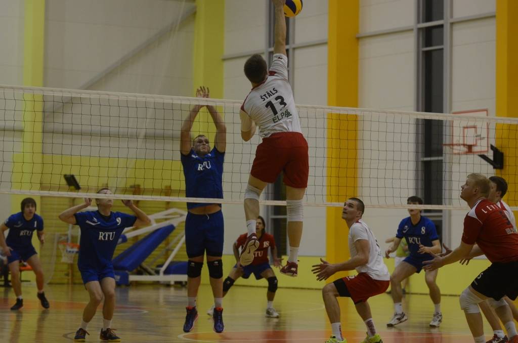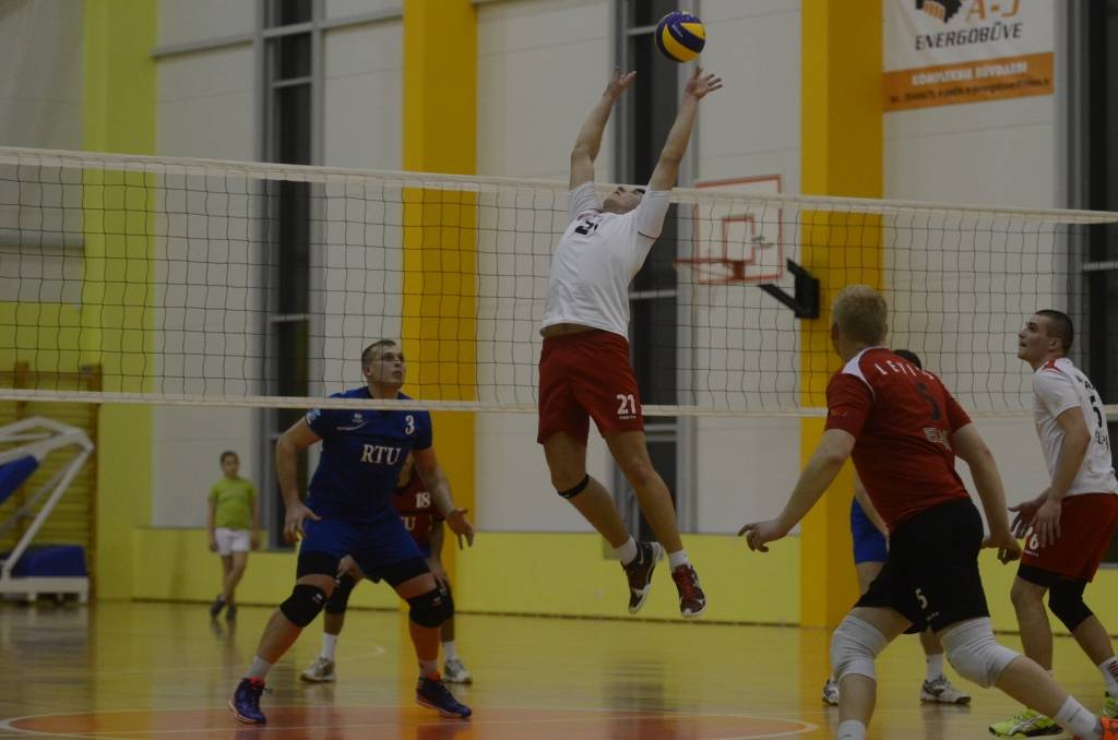 Pirmajā setā vadības grožus uzņēmās “RTU” volejbolisti, bet seta izskaņu labāk aizvadīja aizputnieki, uzvarot ar 25:22.
