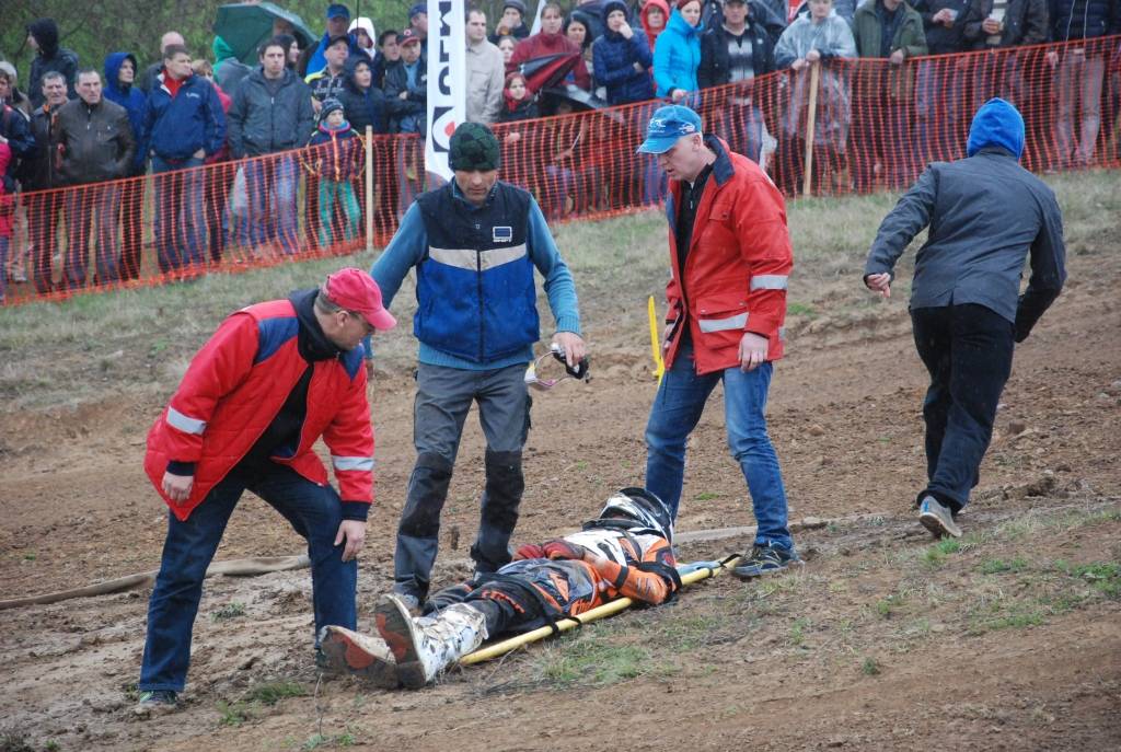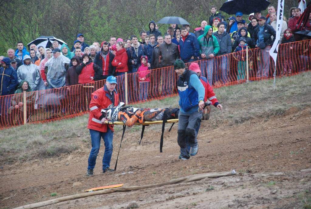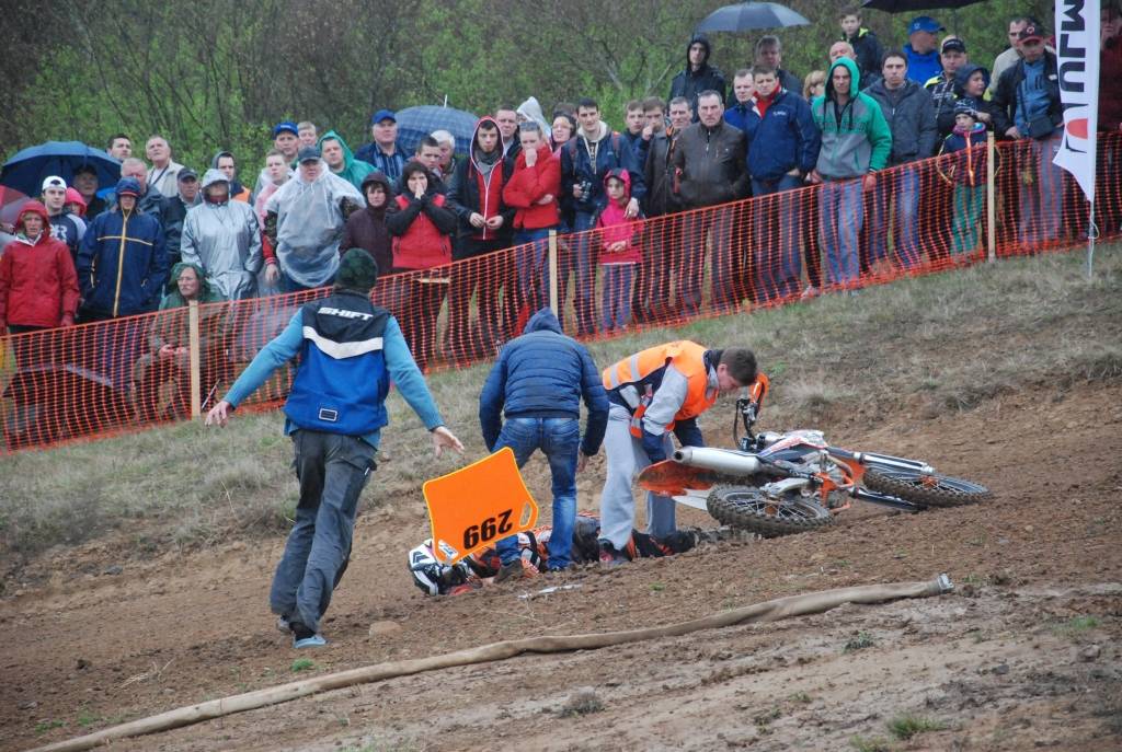 “MX2” klases pirmajā braucienā pēc lielā tramplīna smagu kritienu piedzīvoja igauņu braucējs Hendriks Talviku, kuram bija nepieciešama mediķu palīdzība.