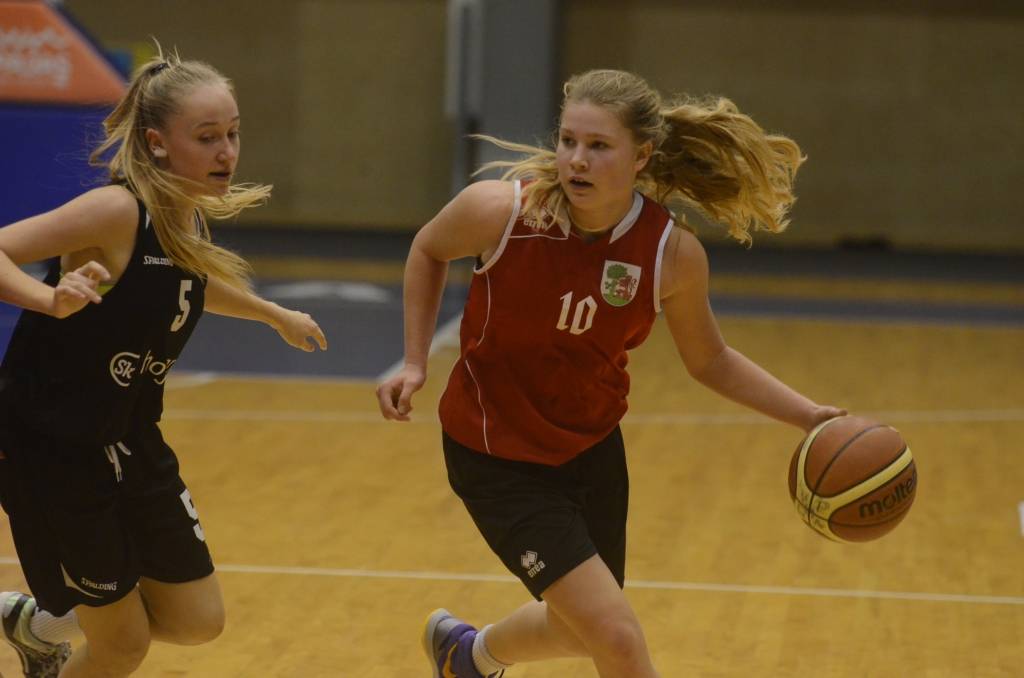 FOTO: "BS Liepāja" basketbolistes otrajā pagarinājumā pārspēj Dānijas vienaudzes