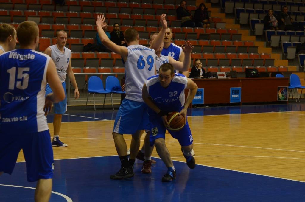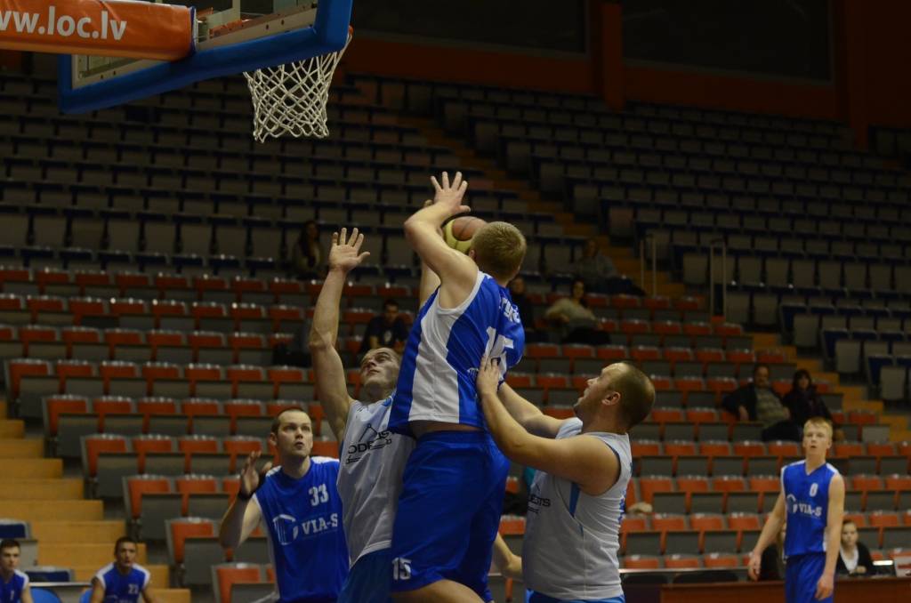 Līdzvērtīgi ritēja “Ģeodēzista” un “VIA-S Modular Houses” spēle, kurā pēc pirmā puslaika ar 47:45 vadībā bija “VIA-S Modular Houses”. Mačs punkts punktā ritēja arī visu trešo ceturtdaļu, kuras beigu daļā četru punktu pārsvaru ieguva “VIA-S Modular Houses” – 58:54. Ceturtdaļas beigas sekmīgāk aizvadīja “Ģeodēzists”, kas līdz ar beigu signālu iemeta arī tālmetienu, pēc trim ceturtdaļām esot vadībā ar 59:58.