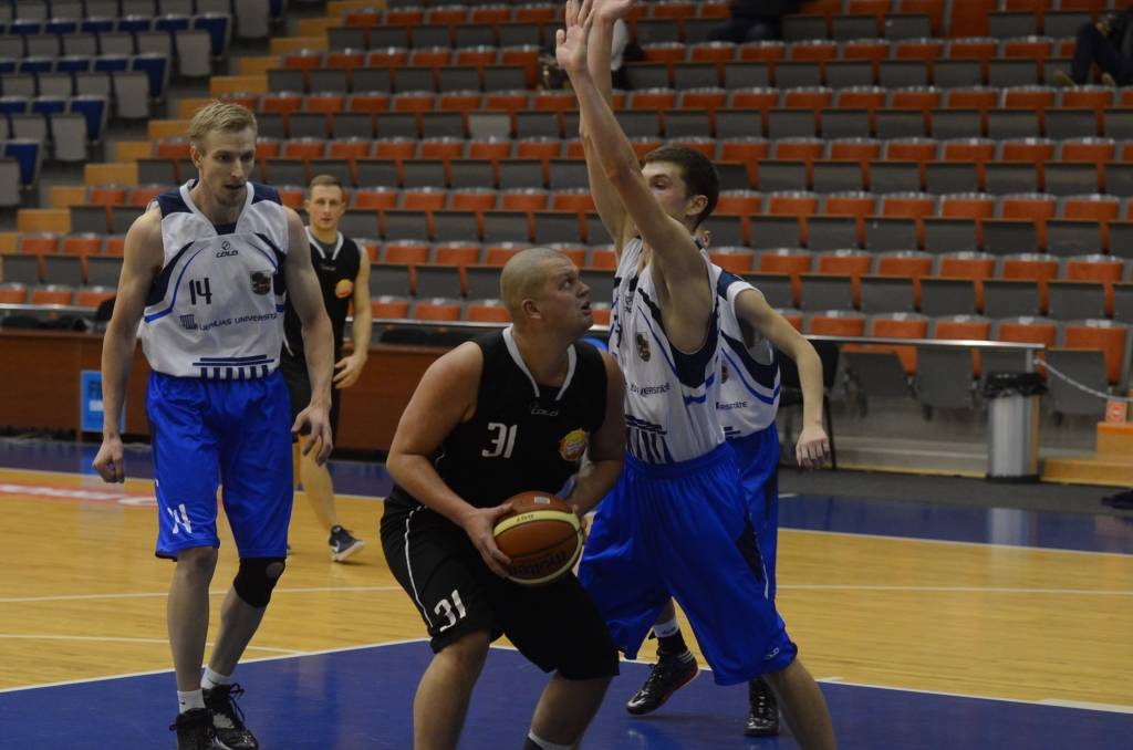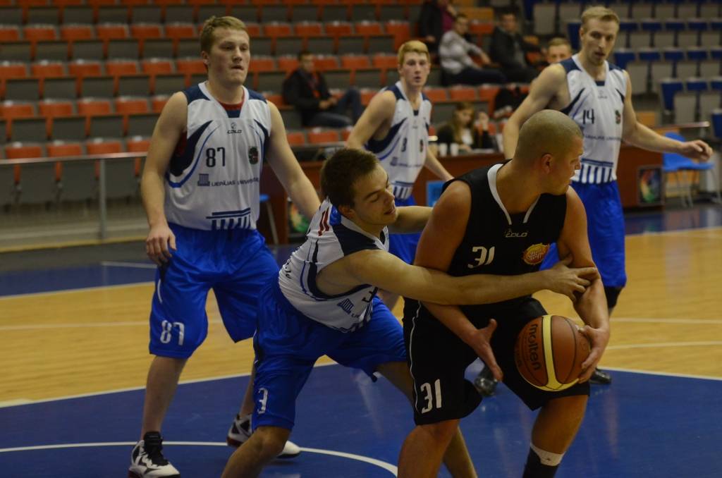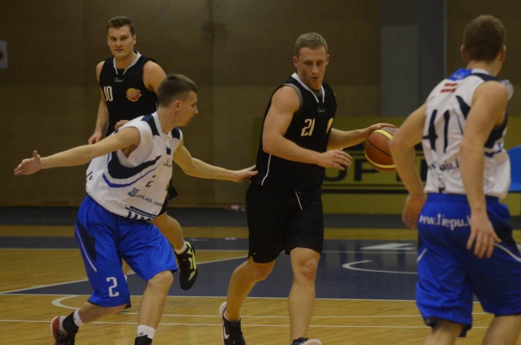 Gandrīz visu spēli punkts punktā ritēja mačs starp “Red Sun Buffet” un “Liepājas Universitāti”. Pēc pirmās ceturtdaļas ar 14:12 vadībā bija “Red Sun Buffet”. Otro ceturtdaļu veiksmīgāk iesāka studenti, kuri pārņēma vadību ar 18:14. Pēc pirmā puslaika “Liepājas Universitāte” bija vadībā ar 30:28.