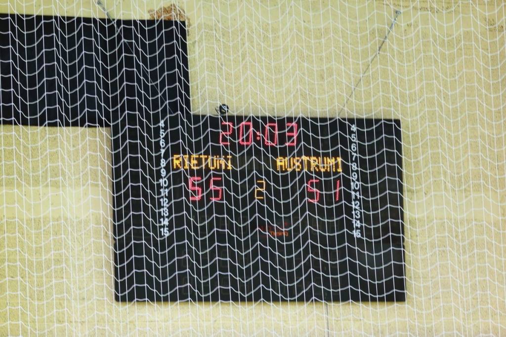 Pēc pēdējā minūtes pārtraukuma, lai mēģinātu atspēlēties no mīnusiem, Austrumu komanda ņēma talkā papildus bumbas. Rietumi gan nebija ar mieru atdot uzvaru un noturēja visa mača garumā turēto vadību – 55:51. Vērtīgākā spēlētāja jeb MVP balvu saņēma Egils Politers no mājinieku Dobeles “Tenax” komandas.