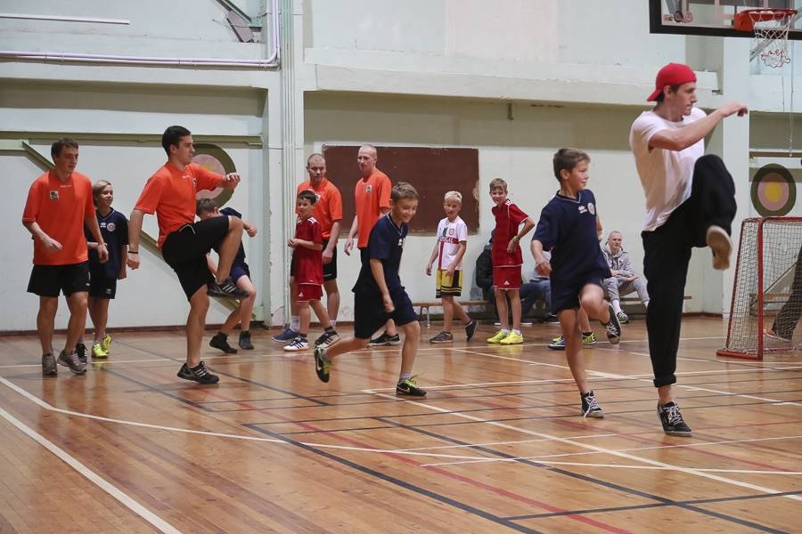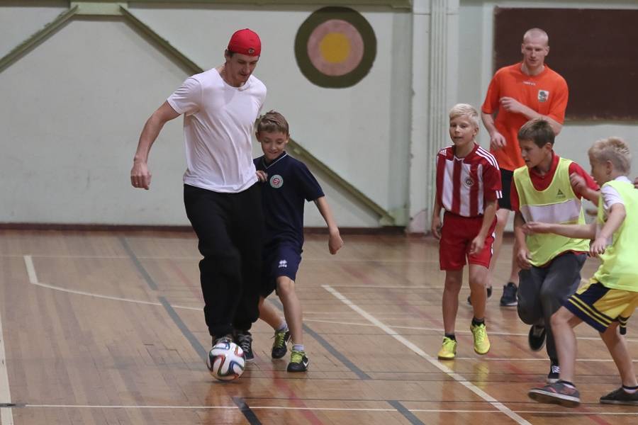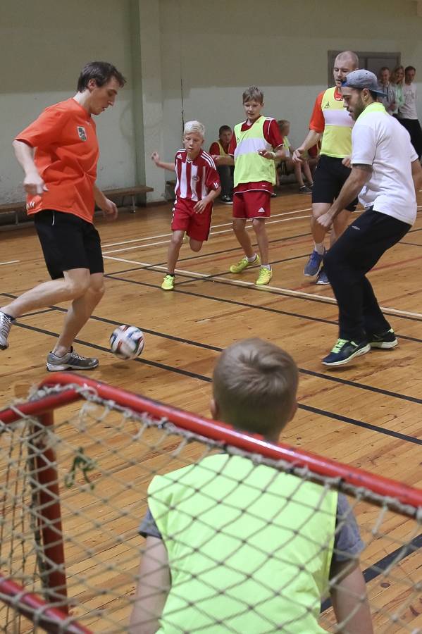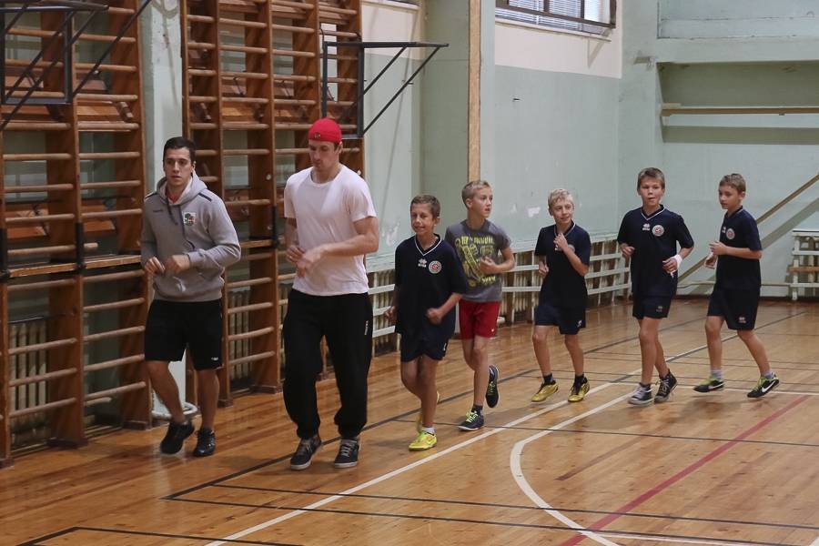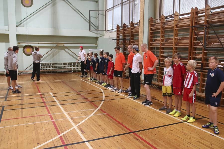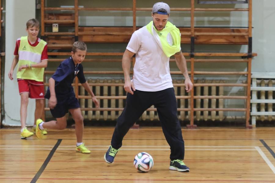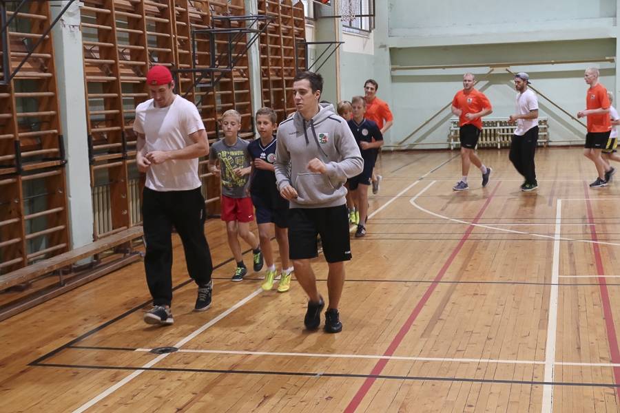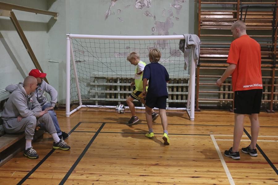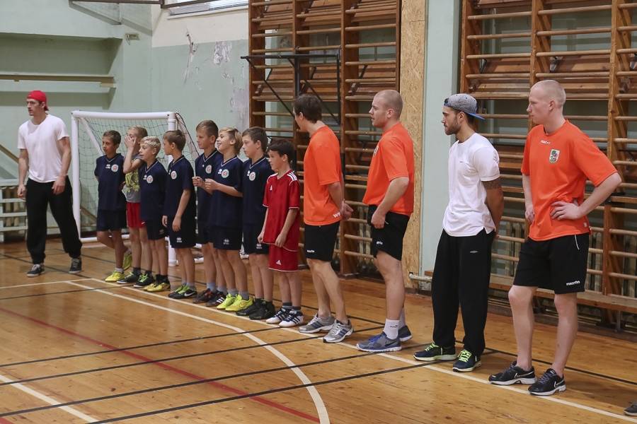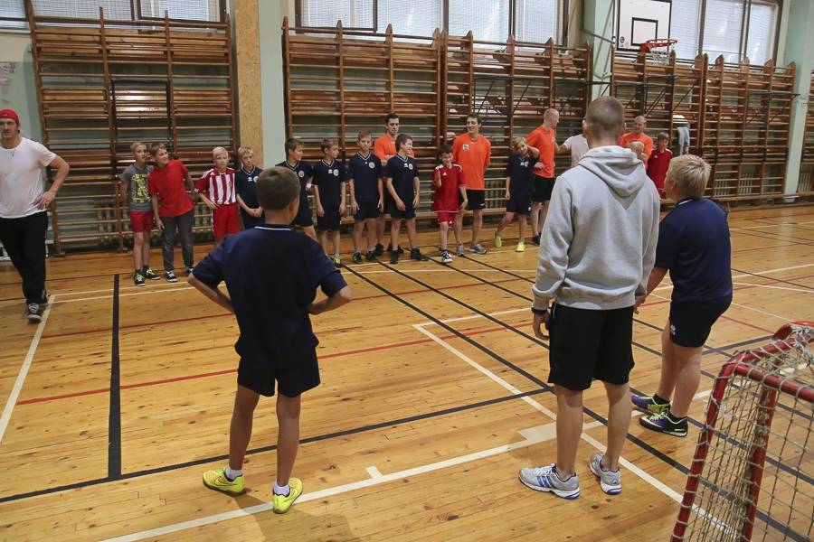 Sporta stundās hokejisti sportoja kopā ar skolēniem, bet kopā ar specializēto futbola klasi kopīgi uzspēlēja futbolu. Grūti pateikt, kura no iesaistītajām pusēm darbojās aizrautīgāk. Skolotāja lomā iejutās Liepājas Universitātes students, hokejists Bruno Zabis, pārējie komandas biedri palīdzēja ar vingrinājumu izpildīšanas piemēru.