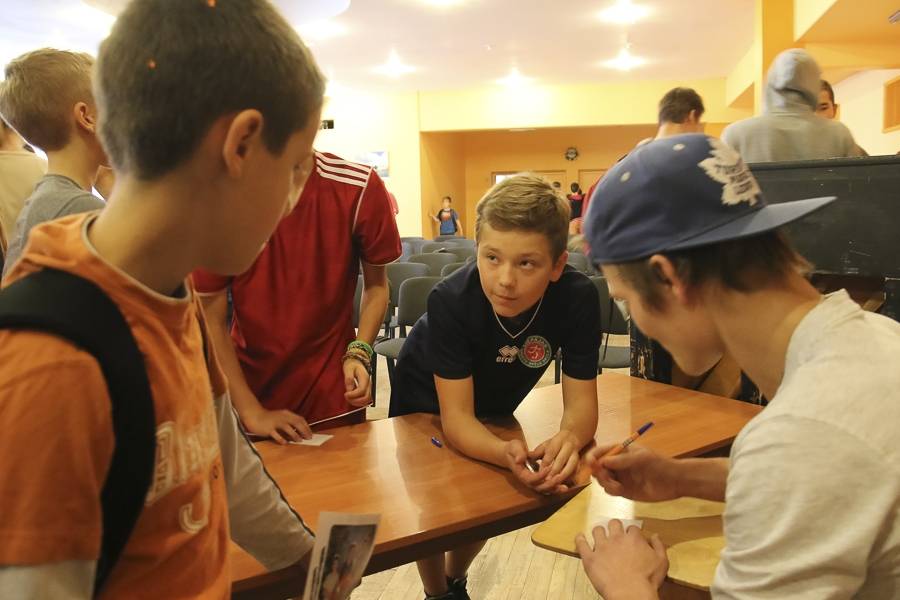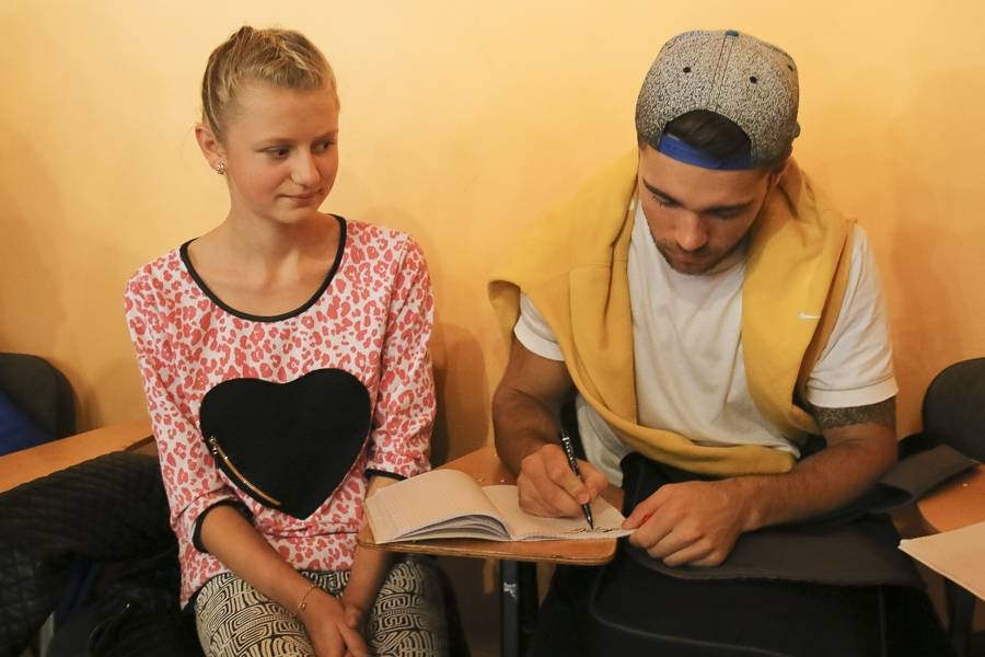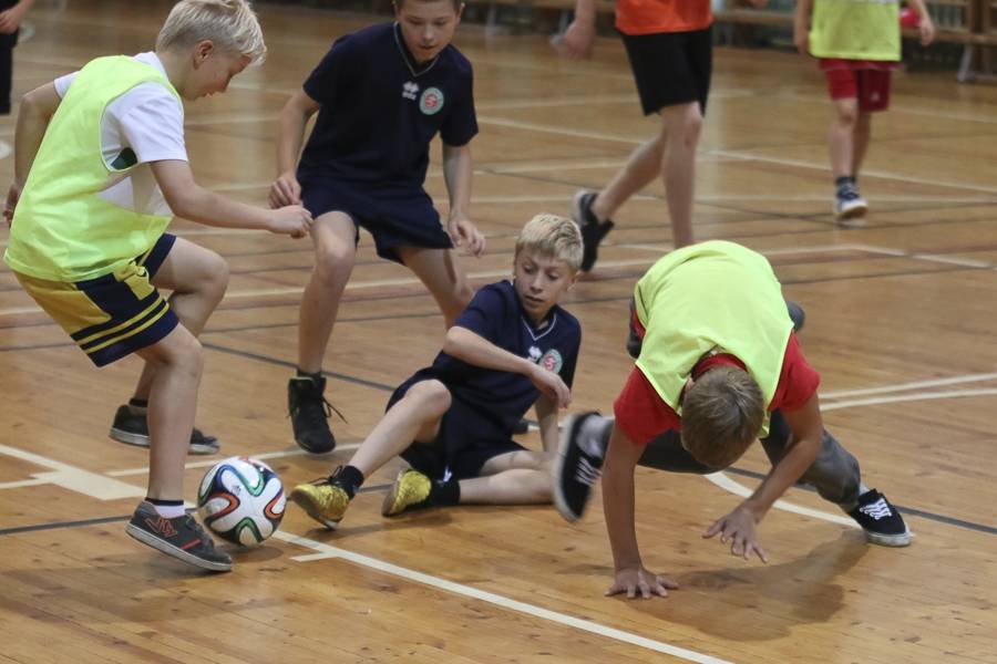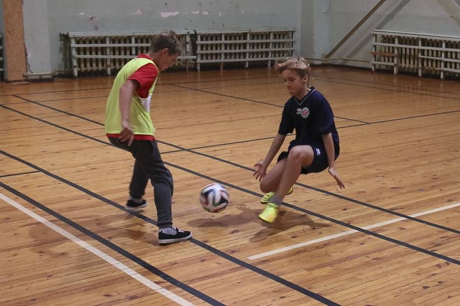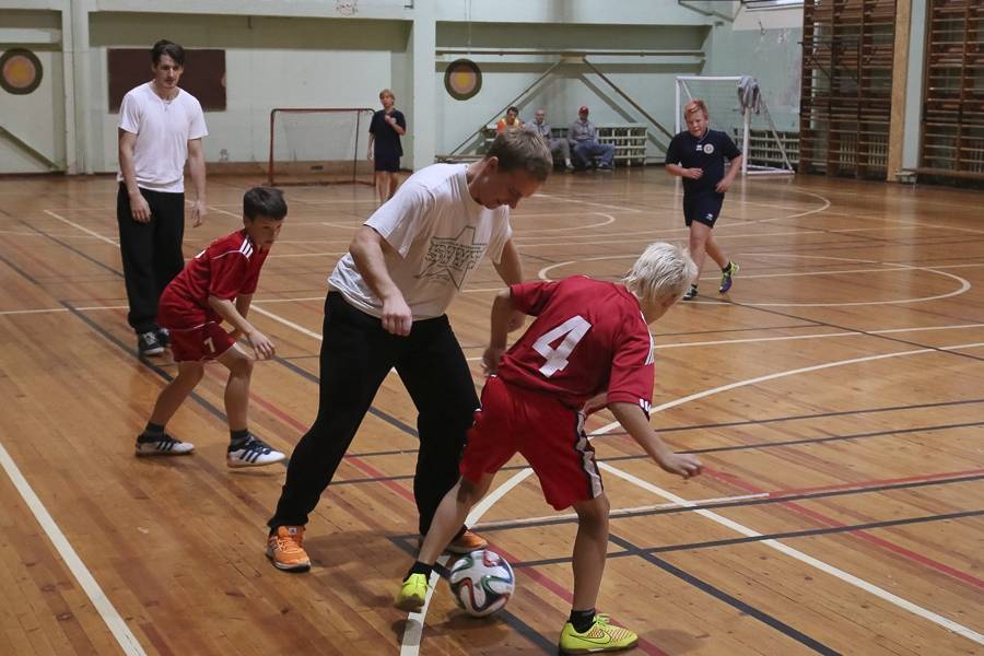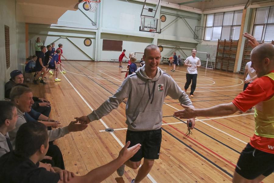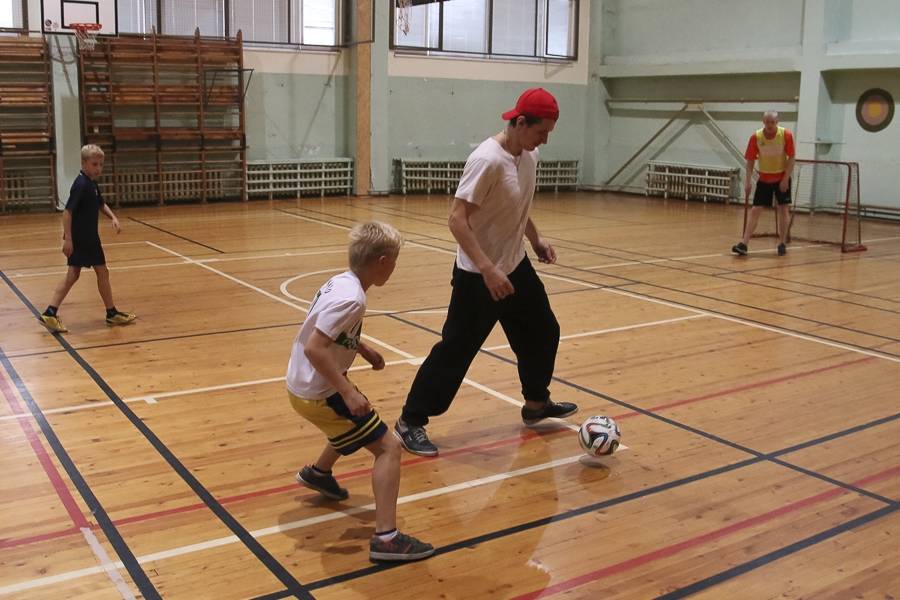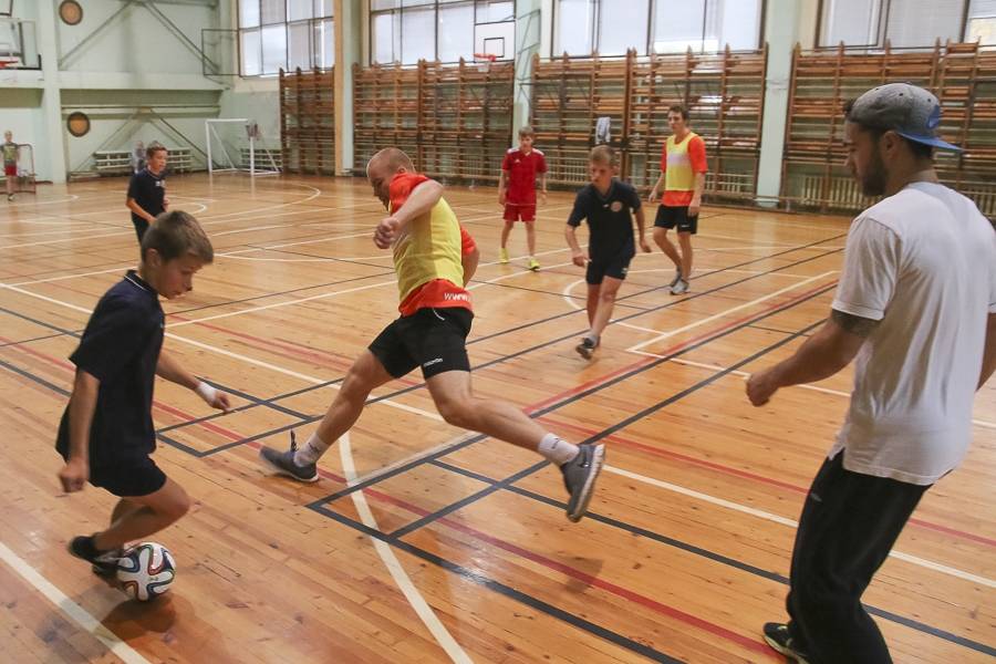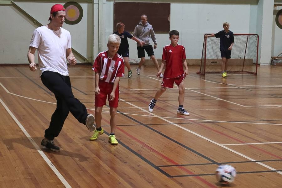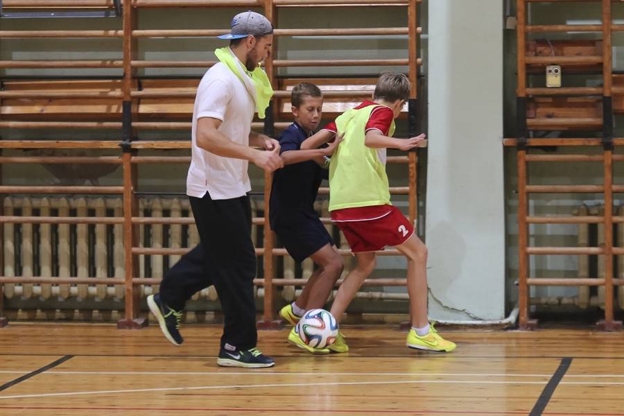 Sporta stundās hokejisti sportoja kopā ar skolēniem, bet kopā ar specializēto futbola klasi kopīgi uzspēlēja futbolu. Grūti pateikt, kura no iesaistītajām pusēm darbojās aizrautīgāk. Skolotāja lomā iejutās Liepājas Universitātes students, hokejists Bruno Zabis, pārējie komandas biedri palīdzēja ar vingrinājumu izpildīšanas piemēru.