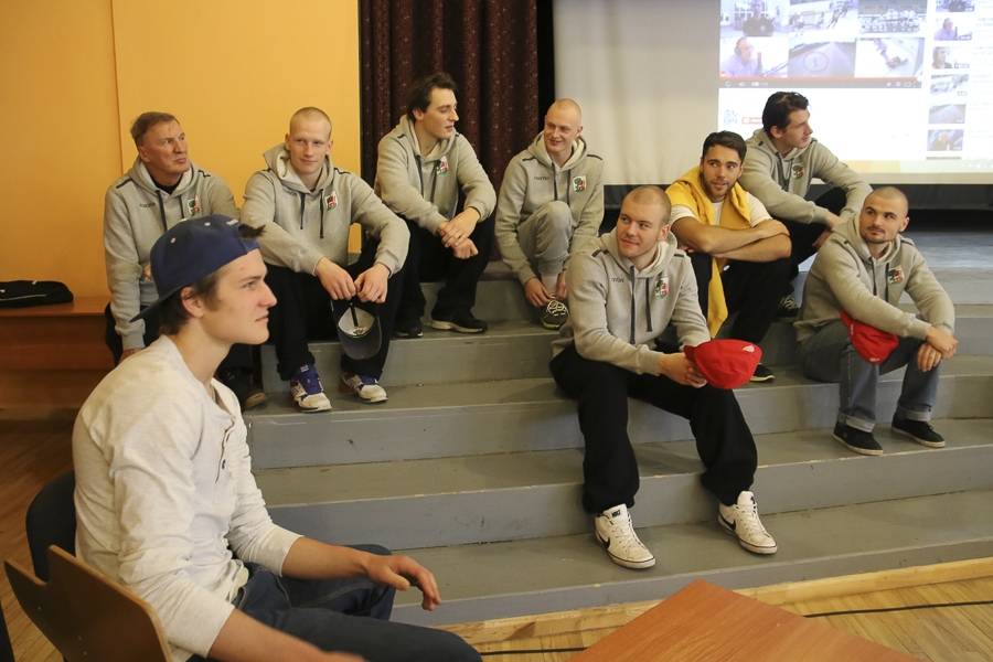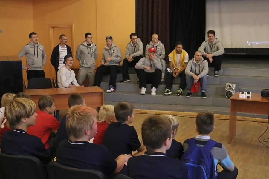 Otrdien HK “Liepāja” hokejisti Liepājas 8. vidusskolā vadīja sporta stundas un tikās ar skolēniem. Tā kā vismaz divpadsmit komandas hokejisti ir šīs skolas absolventi, tad tikšanās izvērtās sirsnīga.