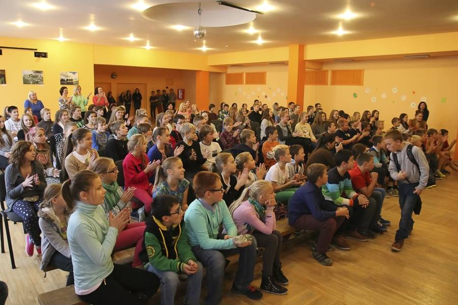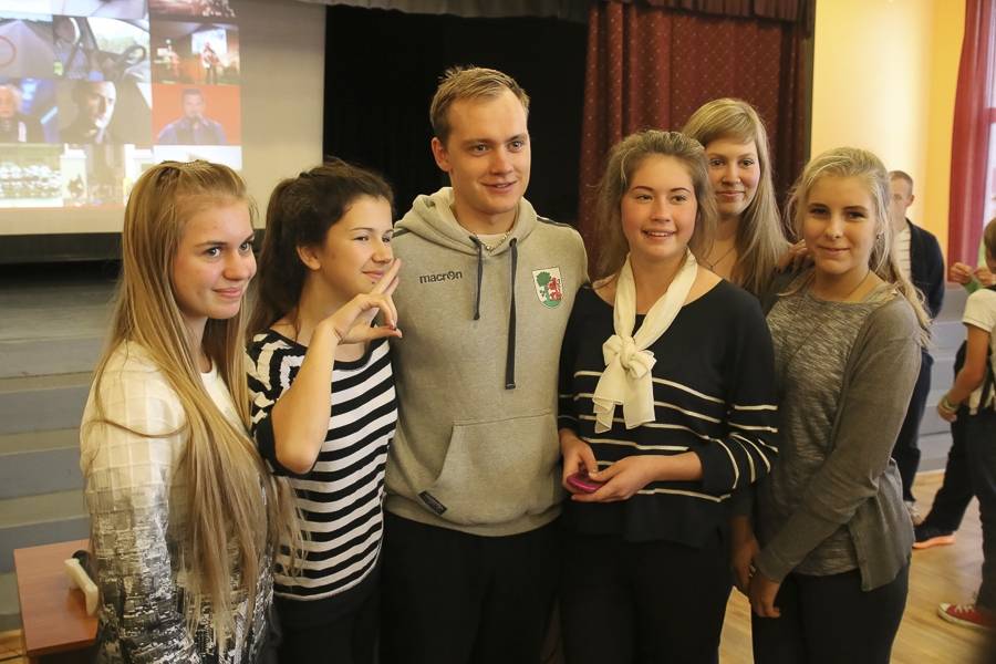 Skolas lielajā zālē notika HK „Liepāja” tikšanās ar skolēniem, kur puiši prezentēja komandu, rādīja video un atbildēja uz jautājumiem. Ovācijām skanot, dāvanā skola saņēma hokeja spēles kreklu ar autogrāfiem un uzaicinājumu atbalstīt komandu spēlēs Liepājas ledus hallē.