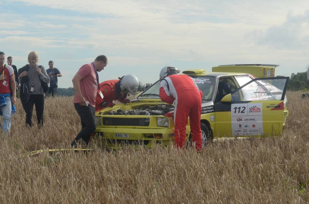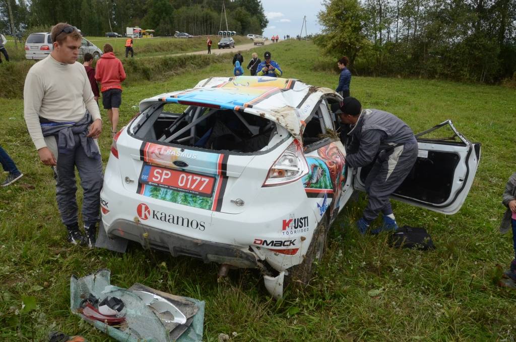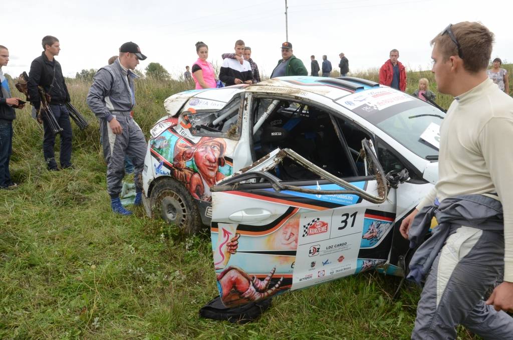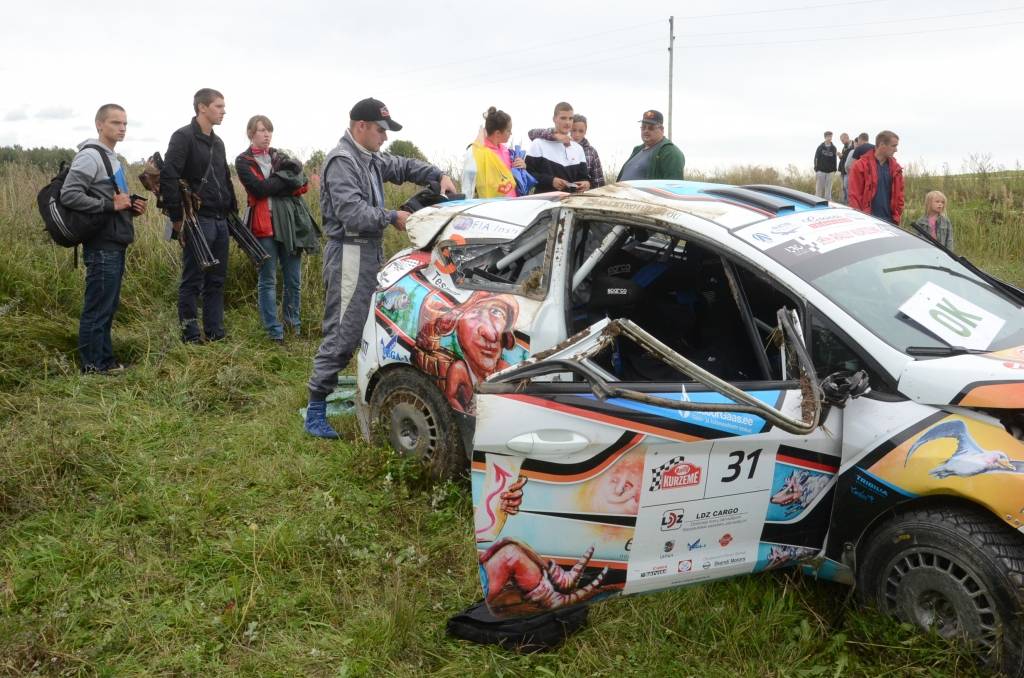 Bildes no Ātruma festivāla – rallija “Kurzeme 2014” otrās dienas Vecpils ātrumposma slavenajām vietām Ķirsītis un Kaģene. Devītajā ātrumposmā Stroķacs tramplīnā bija avarējusi ekipāža ar 31 starta numuru.