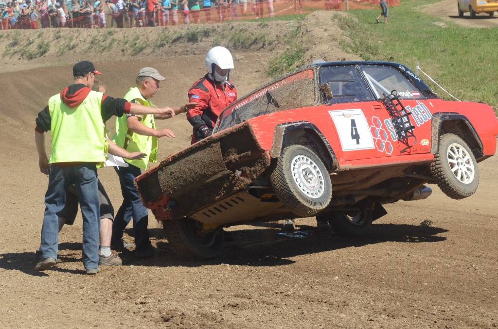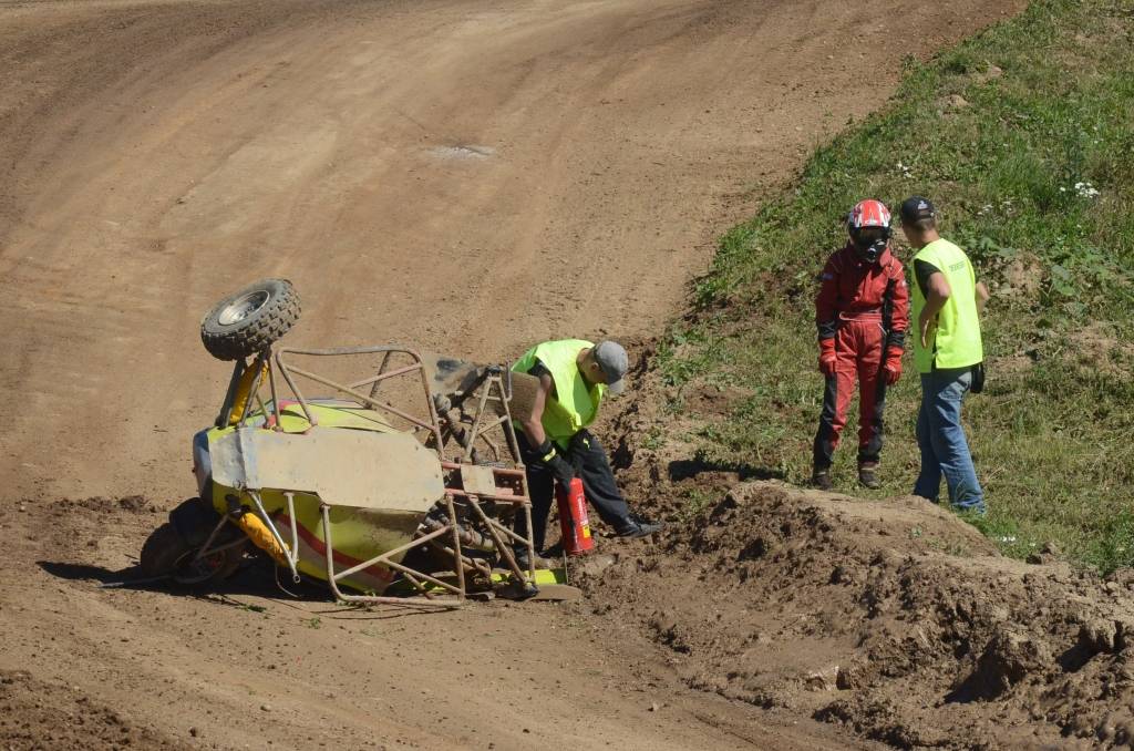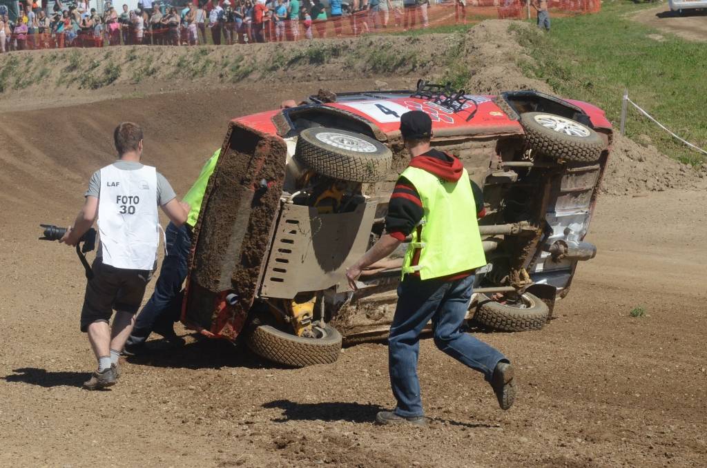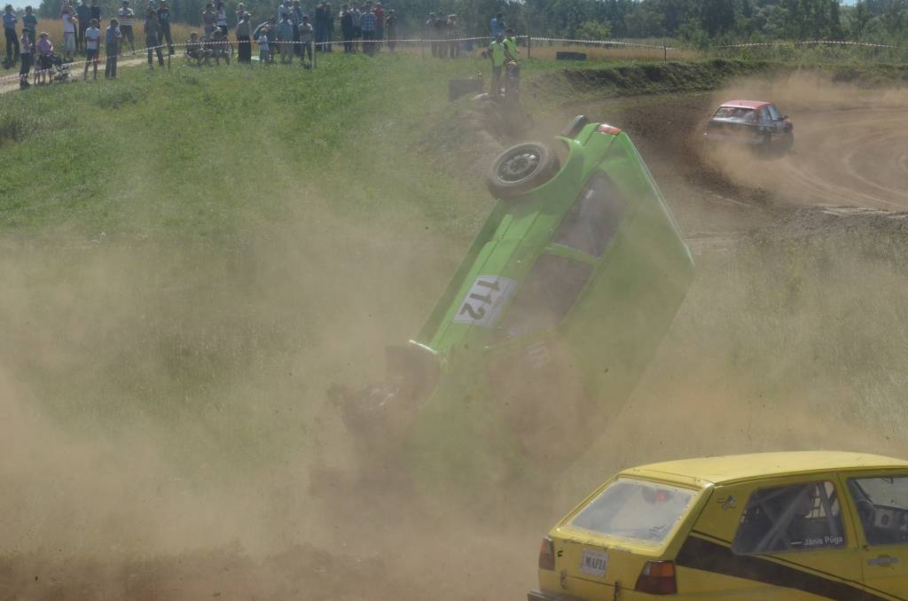Latvijas autokrosa čempionāta trešajā posmā Vecpils autotrasē sestdien, 3. augustā, vairāki sportisti apmeta kūleņus, sacensību laikā izcēlās pat kautiņš.