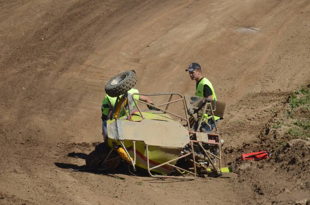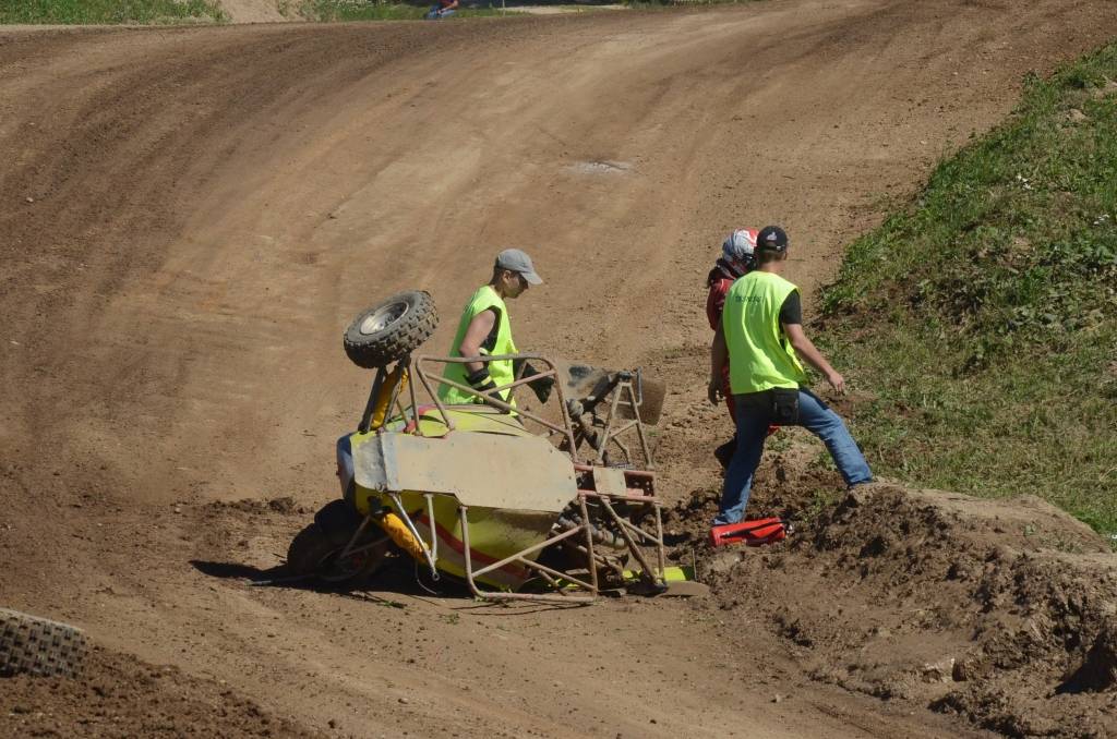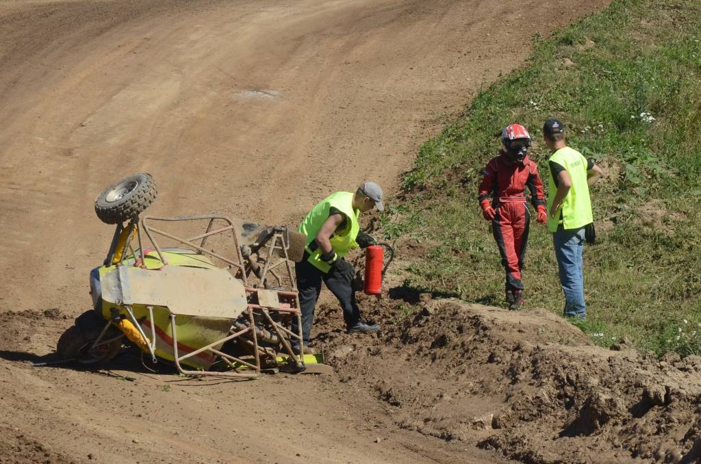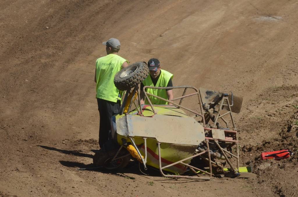 Sestdien, 3. augustā, Vecpils autotrasē Latvijas čempionāta trešais posms autokrosā sākās ar tukumnieces Lienes Sproģes iespaidīgo avāriju “B600” klasē.