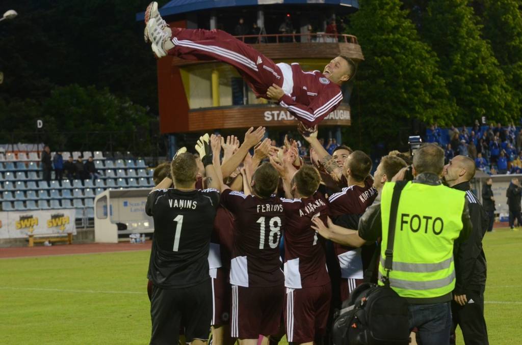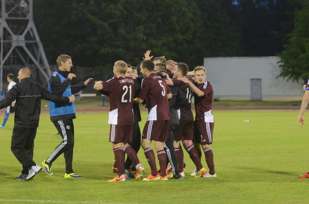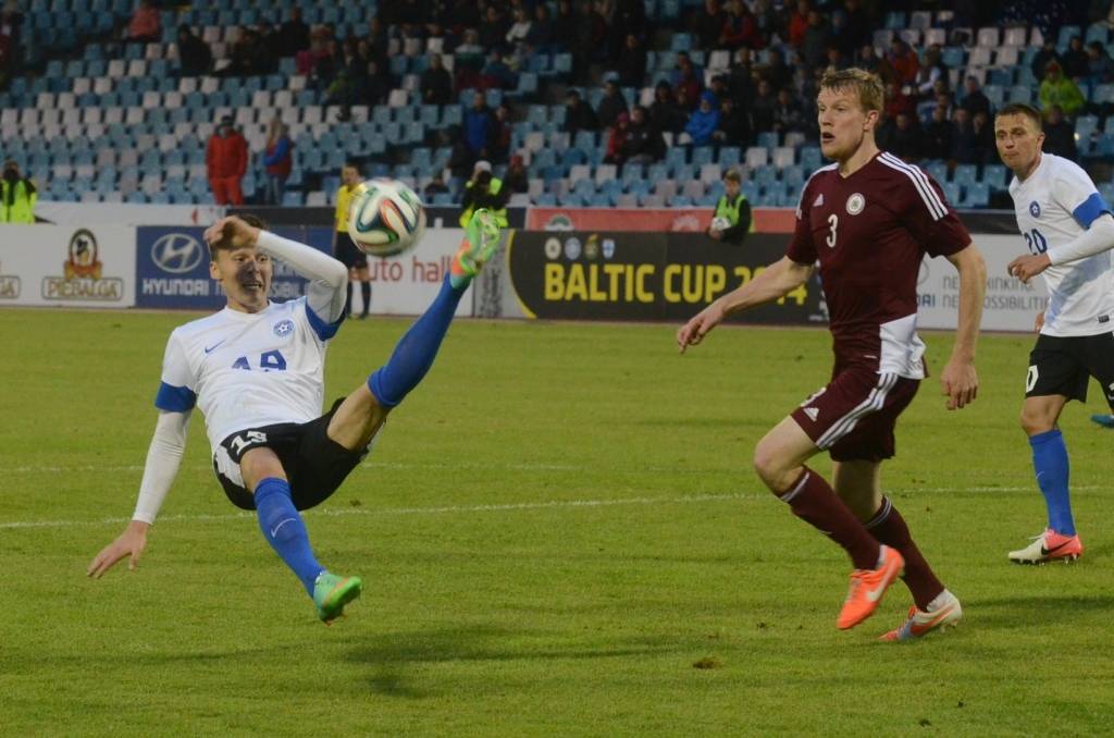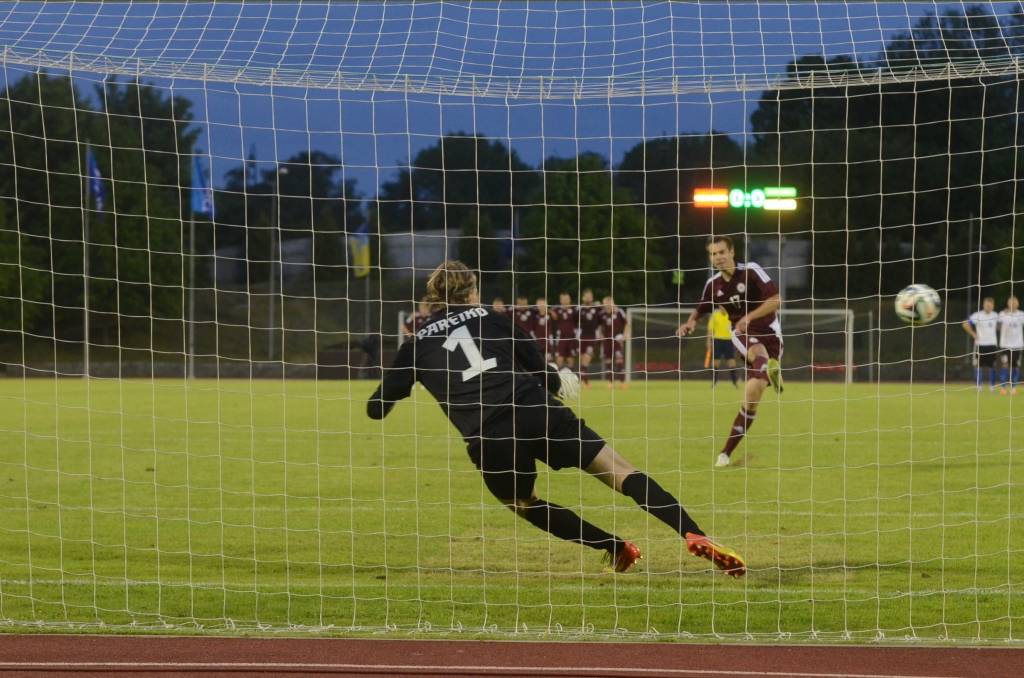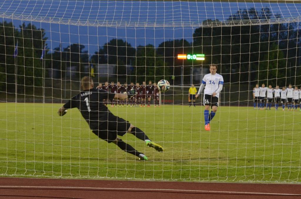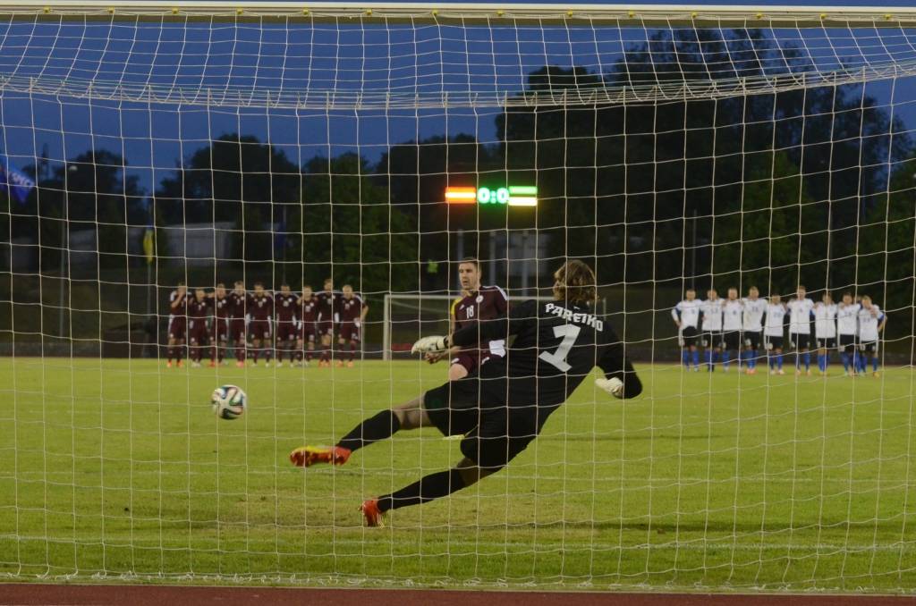 Latvijas futbola izlase Baltijas kausa izcīņas pusfināla spēlē, no valstsvienības atvadoties tās visu laiku rezultatīvākajam futbolistam Mārim Verpakovskim, ceturtdien Liepājā pēcspēles sitienu sērijā uzvarēja Igauniju.