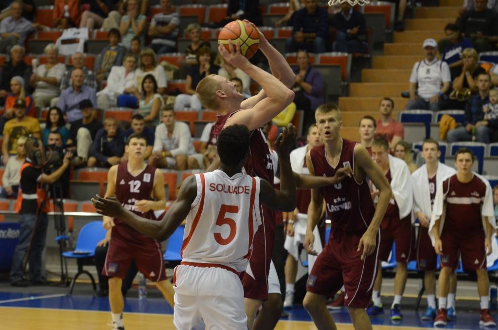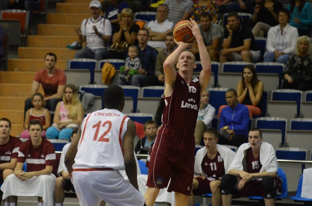 Nervozajā mača izskaņā Latvijas izlases līdzjutēji varēja uzgavilēt pēc Kristapa Gludīša precīzā tālmetiena, izlasei izdevās pārsvaru noturēt un uzvarēt ar 68:56.