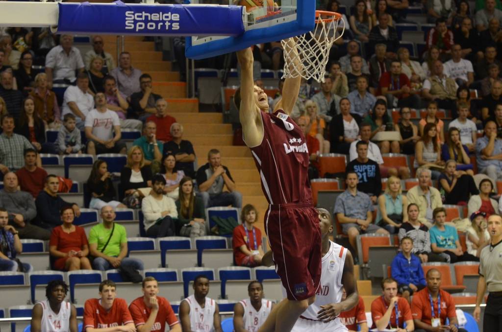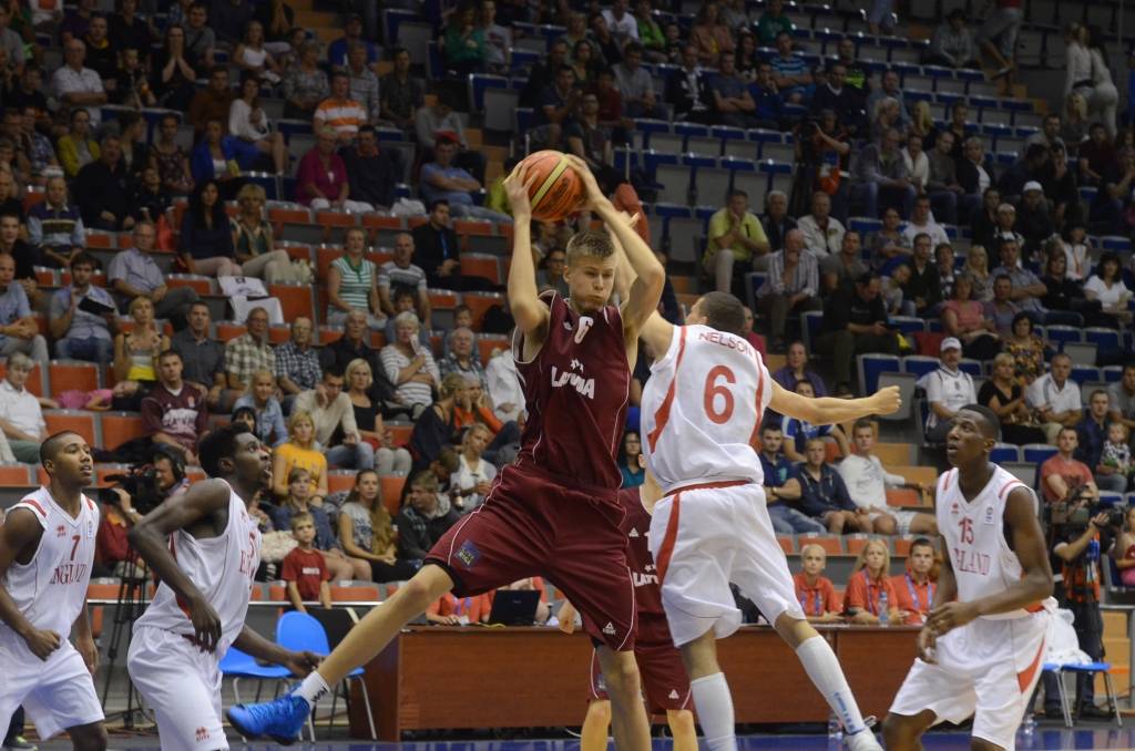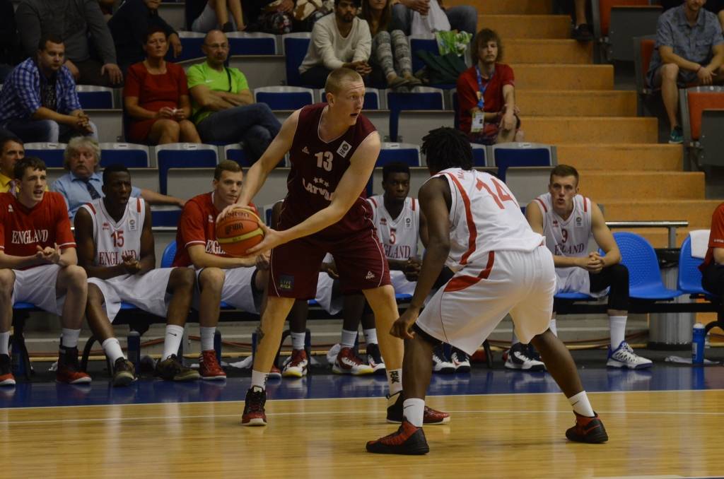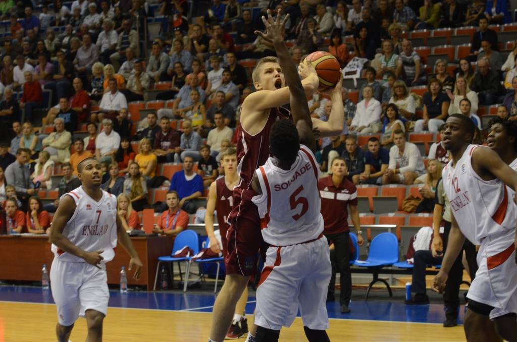 Latvijas U-18 izlases basketbolisti trešdien, 24. jūlijā, Liepājas Olimpiskajā centrā Eiropas čempionāta basketbolā junioriem otrā posma pēdējā spēlē ar 68:56 uzvarēja Angliju un iekļuva čempionāta ceturtdaļfinālā.