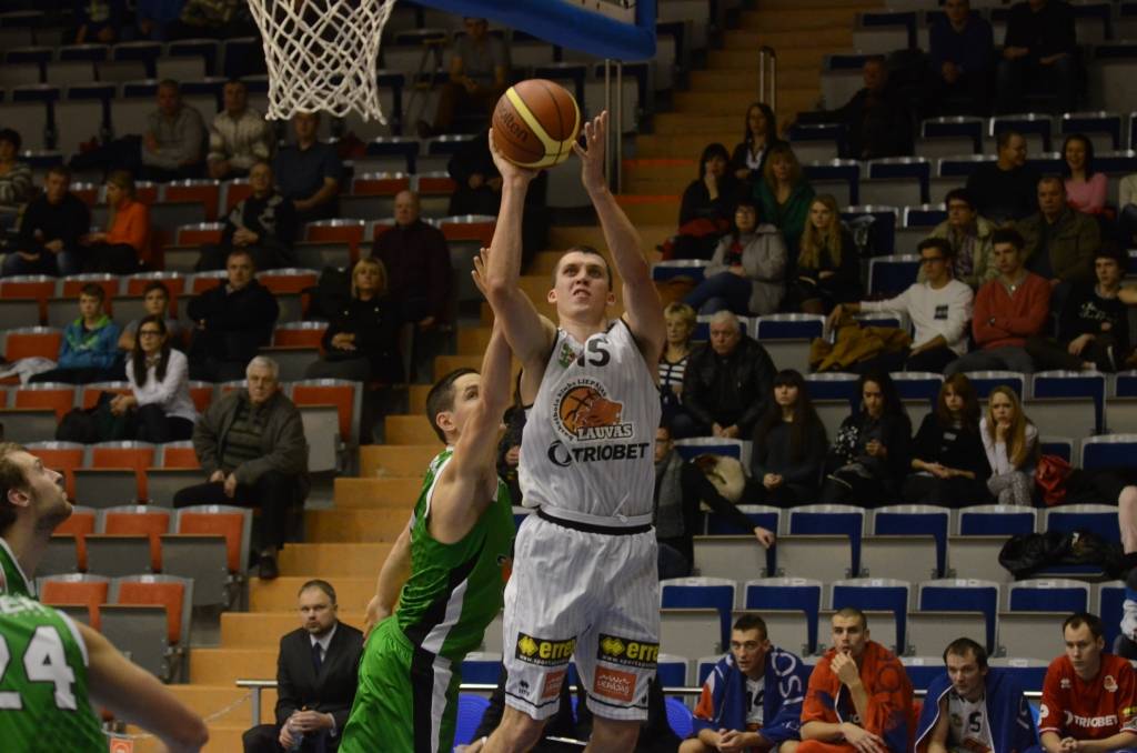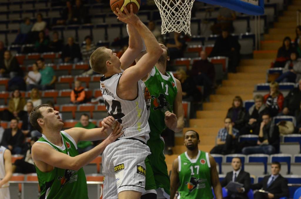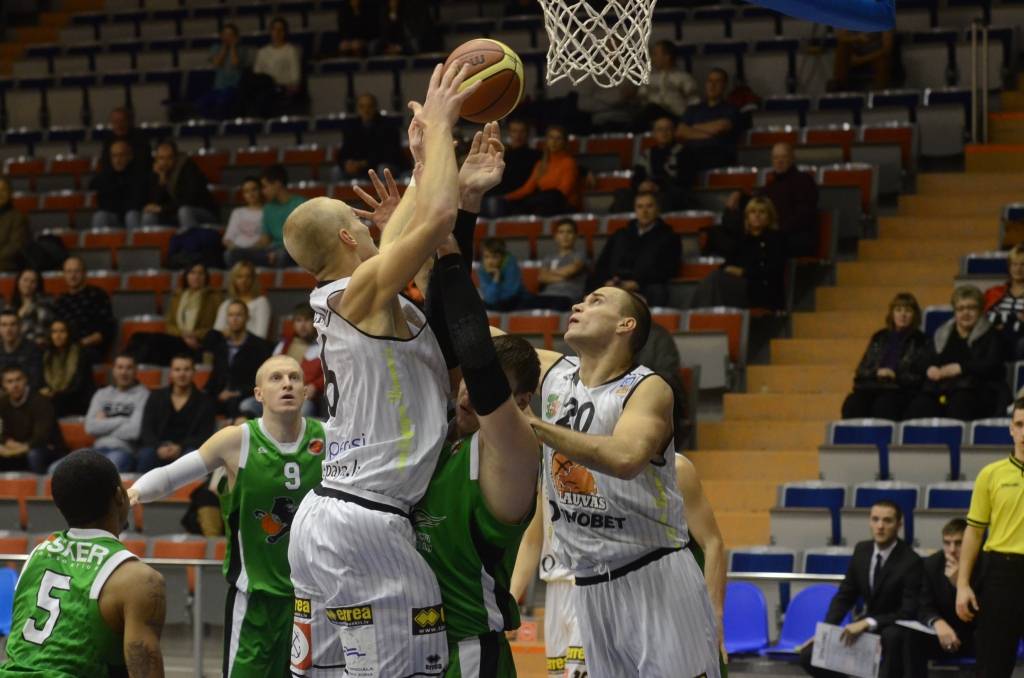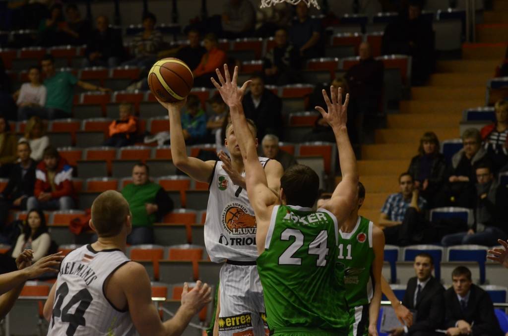 “Liepājas/Triobet” basketbolisti svētdien, 15. decembrī, Liepājas Olimpiskajā centrā Baltijas Basketbola līgā ar 77:76 (18:24; 12:14; 26:17; 21:21) uzvarēja Kazahstānas klubu “Barsy Atyrau”. Tā liepājniekiem bija pirmā uzvara Baltijas Basketbola līgā.