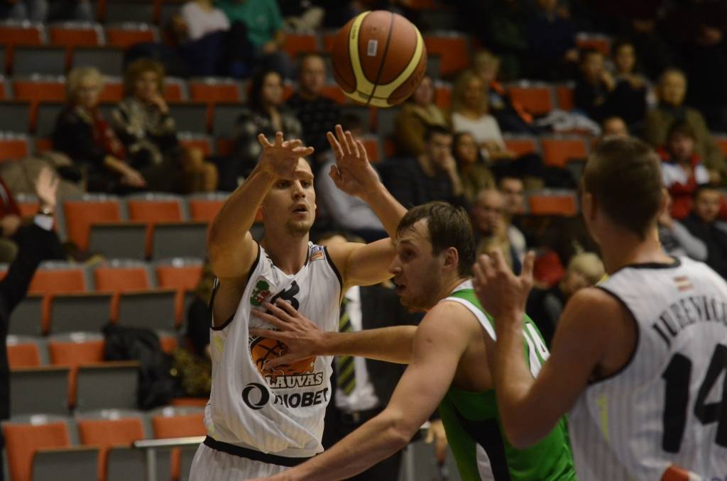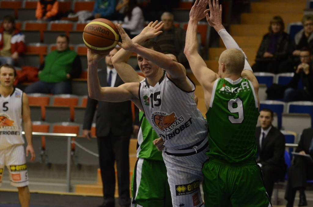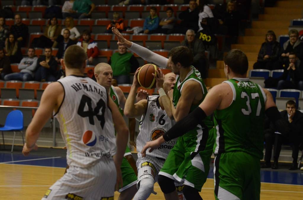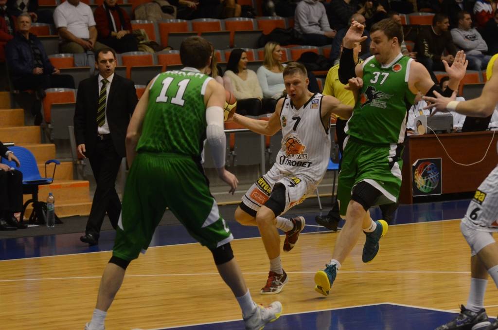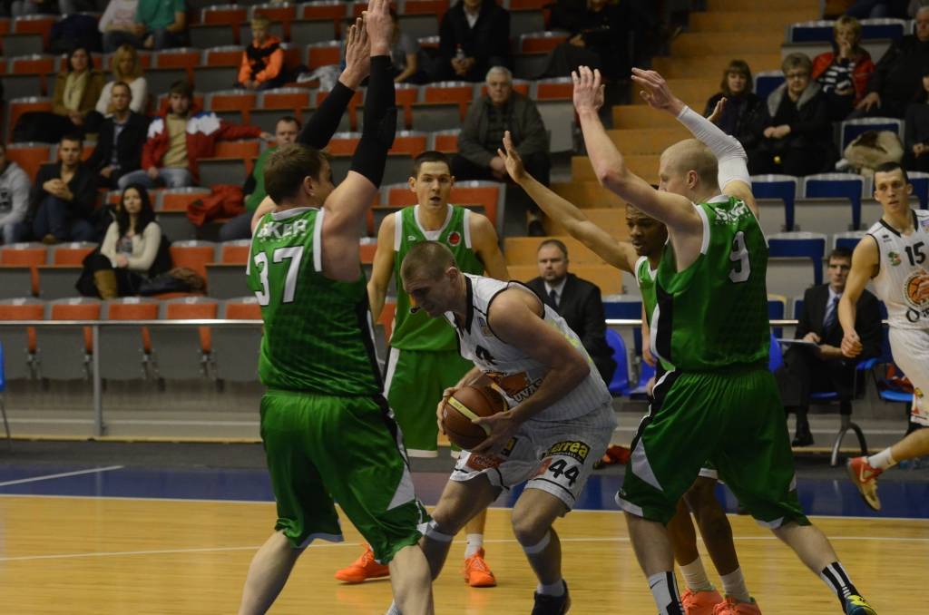 “Liepājas/Triobet” basketbolisti svētdien, 15. decembrī, Liepājas Olimpiskajā centrā Baltijas Basketbola līgā ar 77:76 (18:24; 12:14; 26:17; 21:21) uzvarēja Kazahstānas klubu “Barsy Atyrau”. Tā liepājniekiem bija pirmā uzvara Baltijas Basketbola līgā.