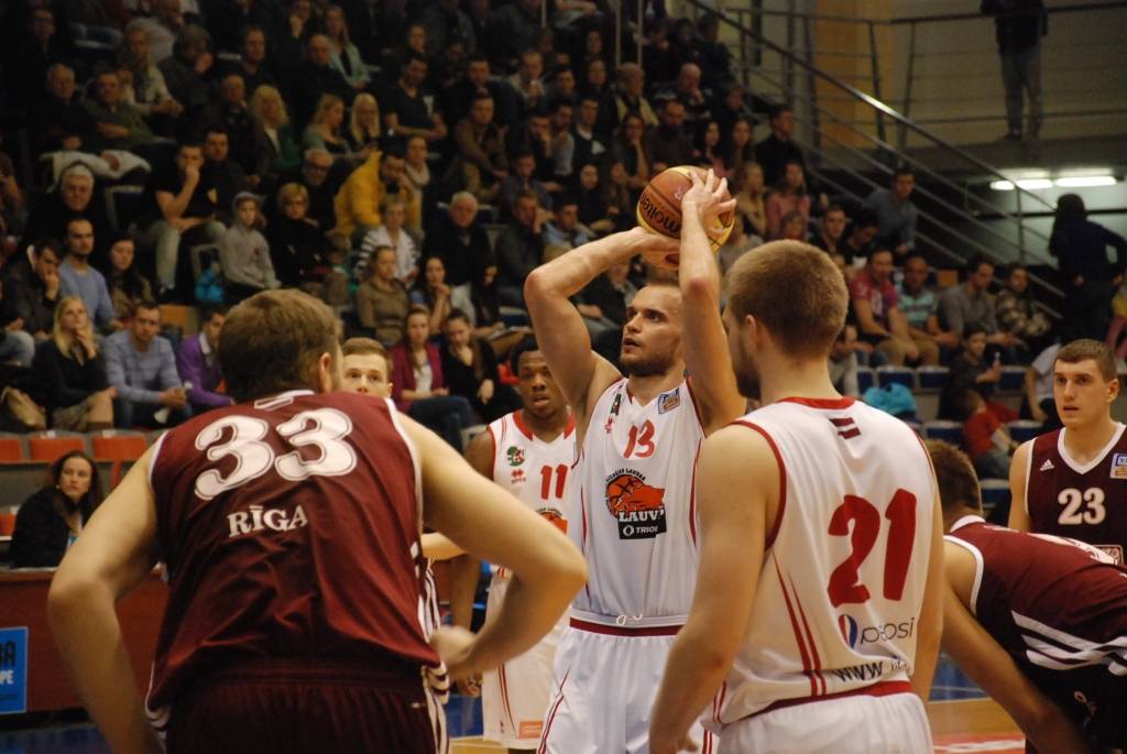 FOTO: "Liepāja/Triobet" ceturtdaļfināla pirmajā spēlē pārliecinoši uzvar "Baronu/LDz"
