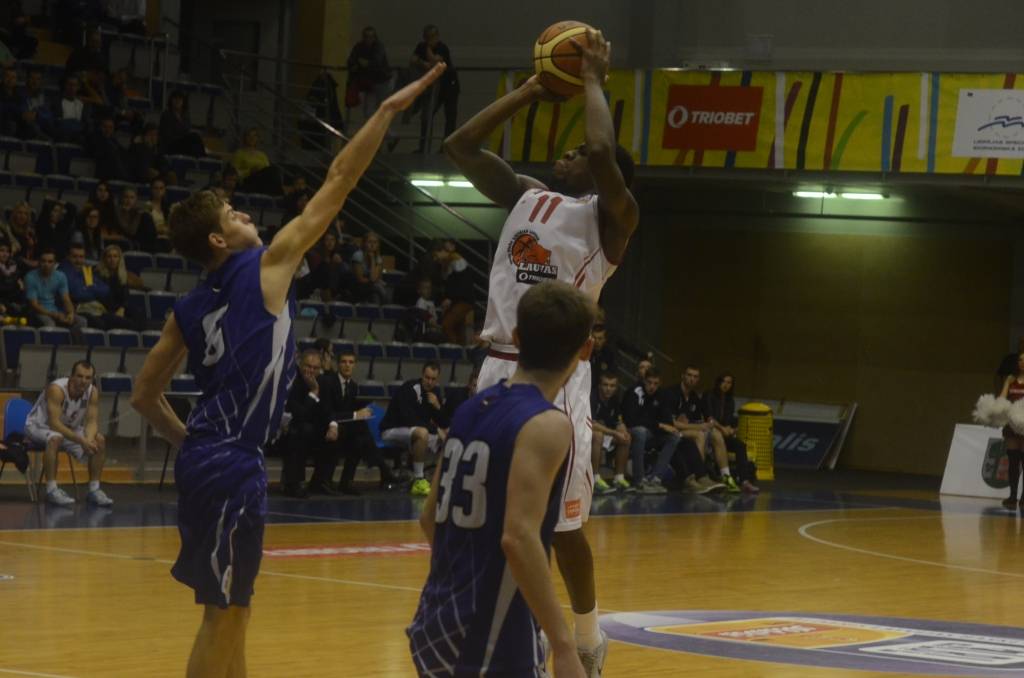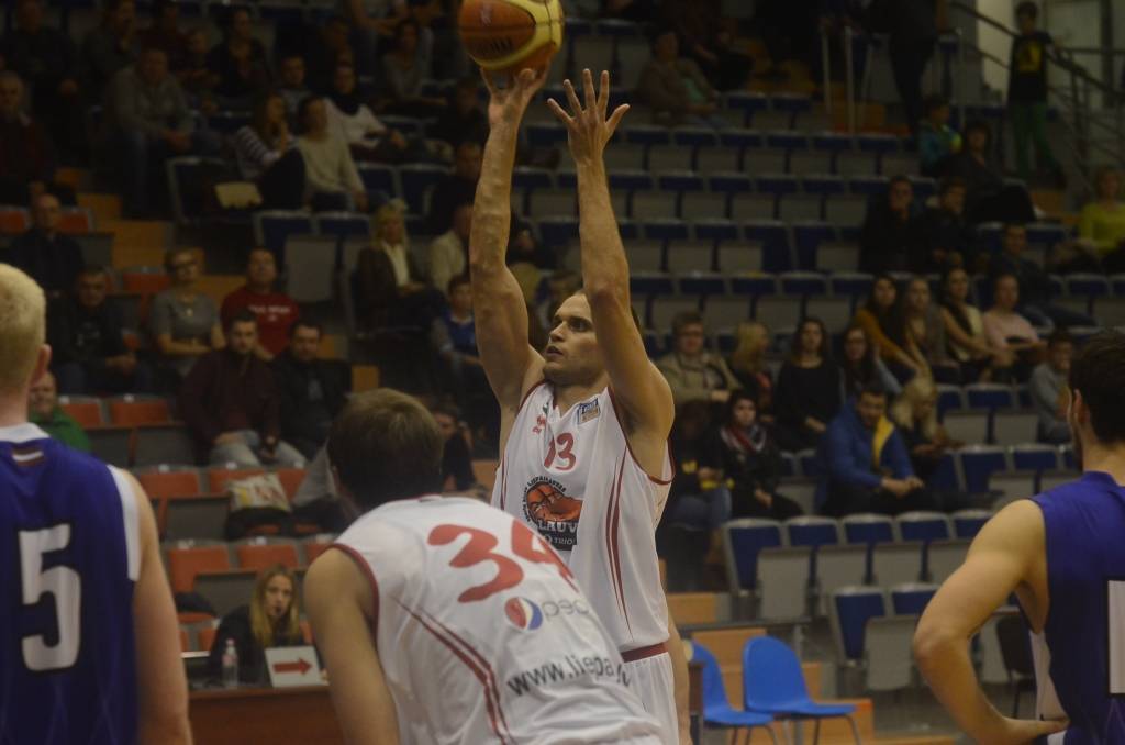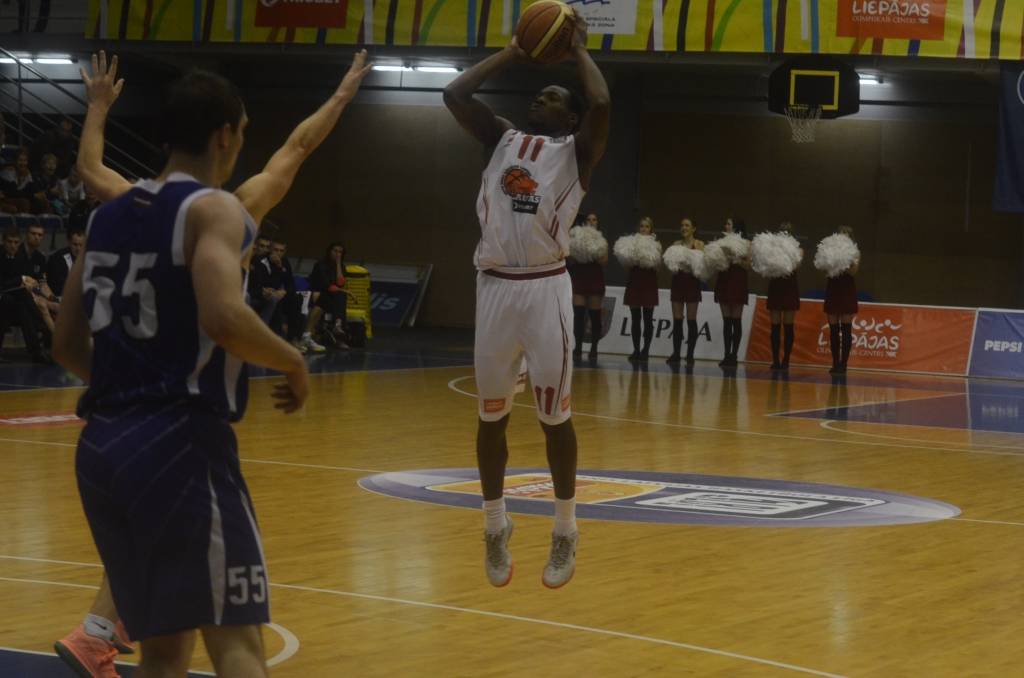 “Liepājas/Triobet” basketbolisti trešdien, 15. oktobrī, Liepājas Olimpiskajā centrā “Aldaris” Latvijas Basketbola līgas pirmajā divīzijā ar 90:86 pagarinājumā uzvarēja komandu “Jelgava”.