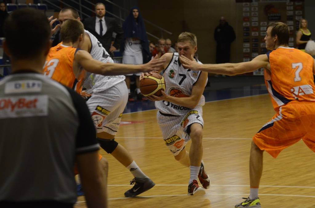 “Liepāja/Triobet” sestdien, 5. oktobrī, Liepājas Olimpiskajā centrā Latvijas Basketbola līgas pirmās divīzijas spēlē ar 75:74 uzvarēja “BA Turība” komandu.