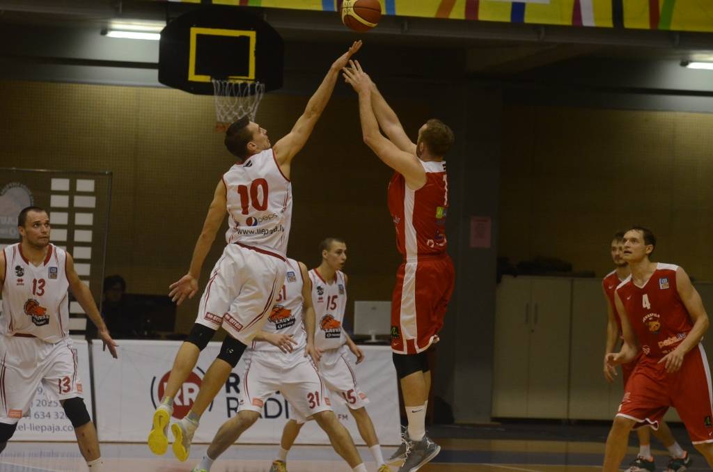 “Liepājas/Triobet” basketbolisti sestdien, 29. novembrī, Liepājas Olimpiskajā centrā “Aldaris” Latvijas Basketbola līgas pirmajā divīzijā ar 79:61 (15:11; 16:16; 26:17; 22:17) uzvarēja “Jēkabpili”.