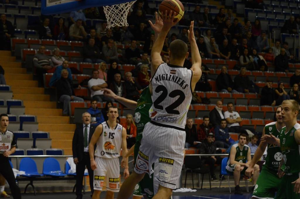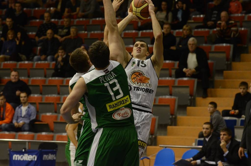 PAPILDINĀTS AR BILDĒM. “Liepāja/Triobet” basketbolisti trešdien, 6. novembrī, savā laukumā “Aldaris” Latvijas Basketbola līgas pirmās divīzijas spēlē ar 65:80 (18:23; 14:17; 21:23; 12:17) zaudēja “Valmierai”.