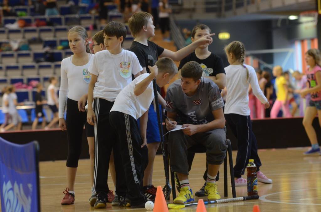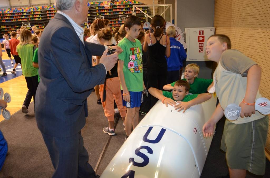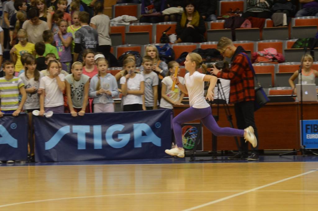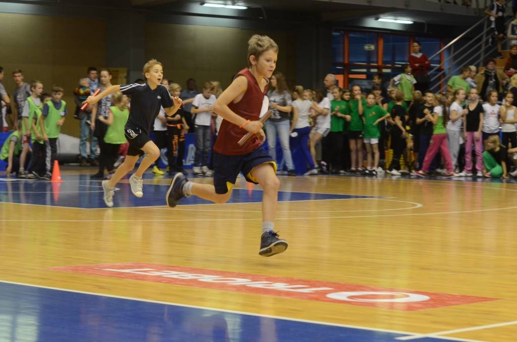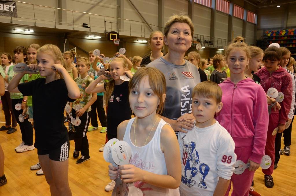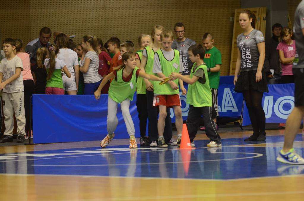 Pēc rīta vingrošanas Olimpiskajā centrā notika stafetes skrējieni, kā arī skolēni savus spēkus varēja pārbaudīt dažādās sporta disciplīnās.