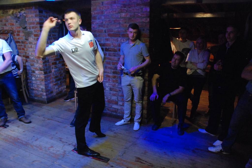 Liepājas Dārts līgas 20. posmā līgas tradicionālā izspēļu kārtība tika nomainīta uz viena mīnusa sistēmu. Sacensībās piedalījās 24 šautriņu metēji, no kuriem trīs bija līgas debitanti –  Aivars Cērps, Daniels Delveris un Mārtiņš Saulītis. Pie balvas varēja tikt arī skatītāji. Savu roku dārtā iemēģināja desmit dalībnieki.