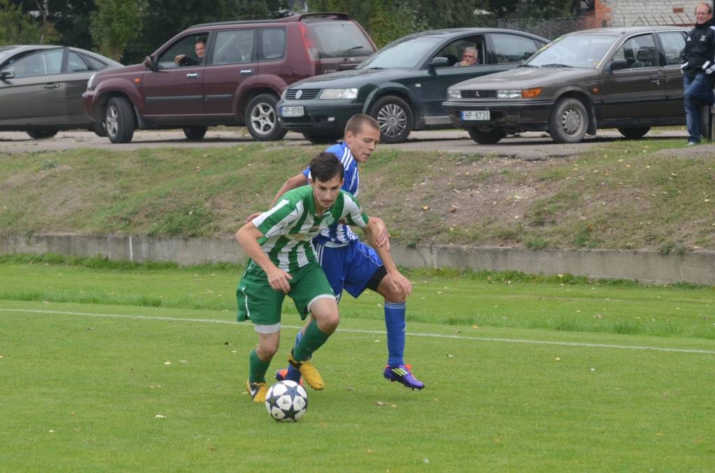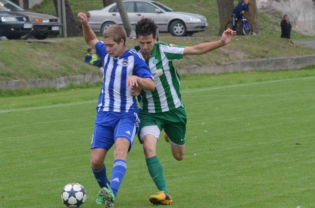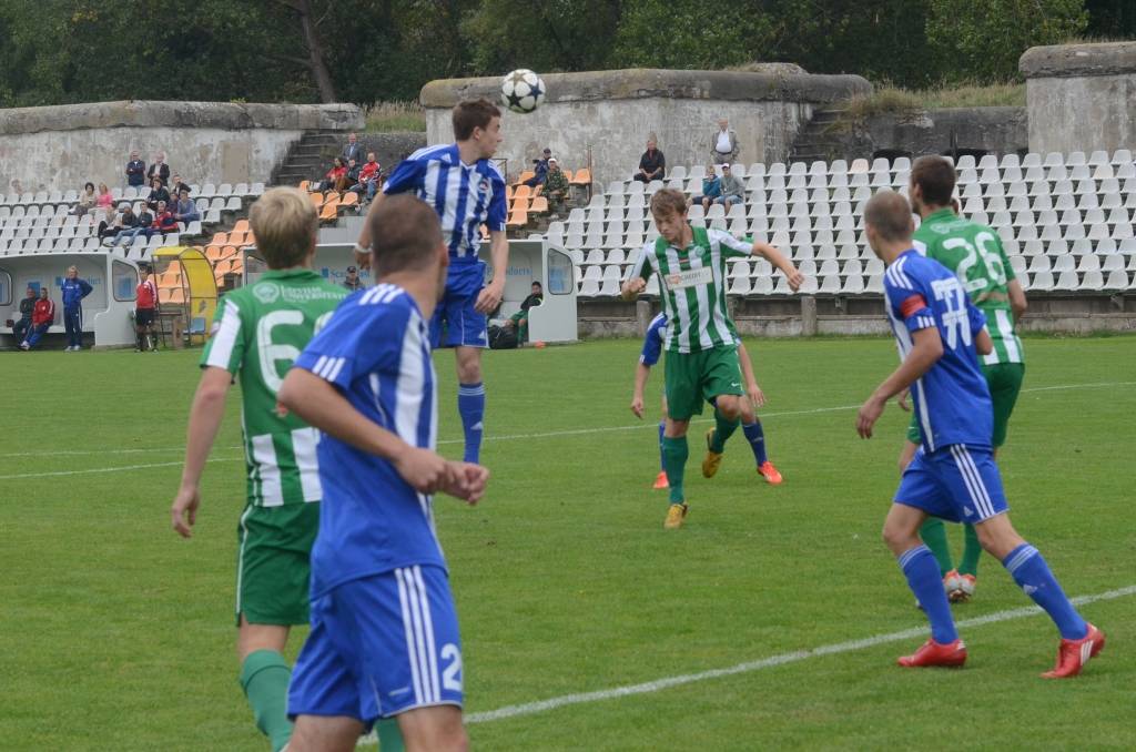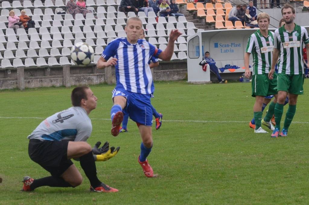 Liepājniekus 14. minūtē vadībā izvirzīja Edgars Freimanis, bet viesi pirmā puslaika pašā izskaņā panāca neizšķirtu.