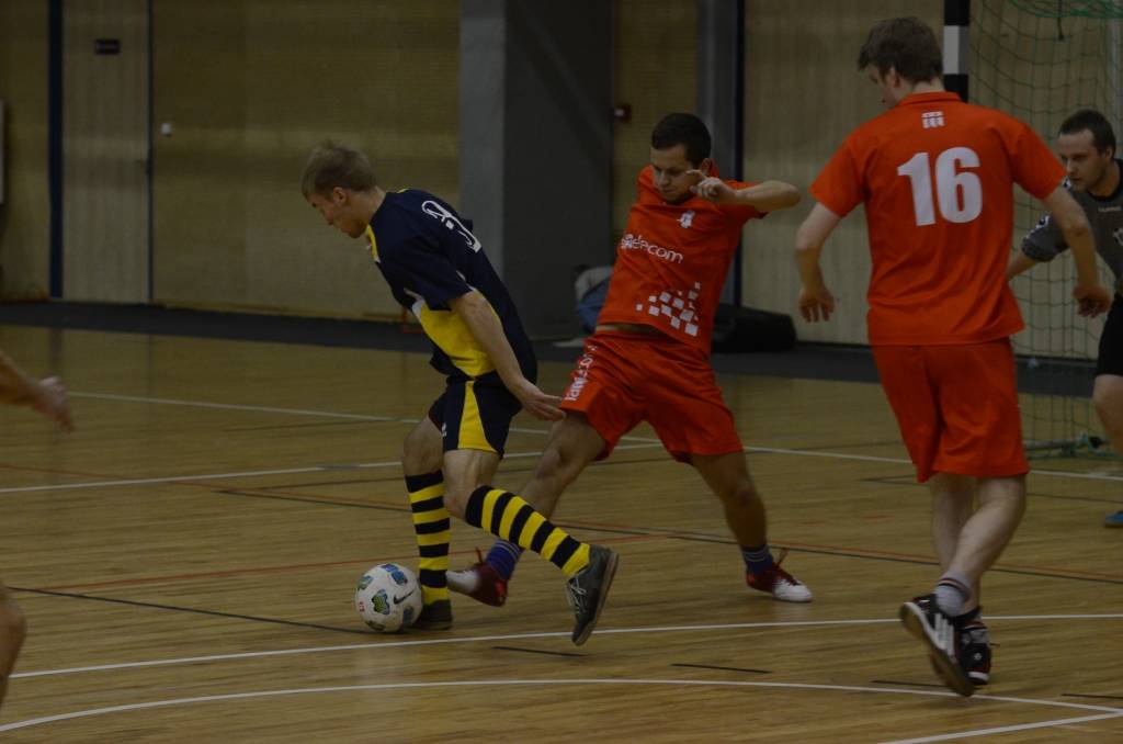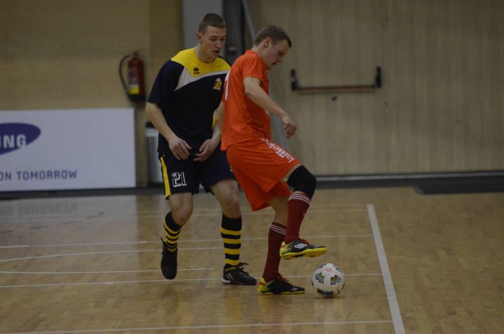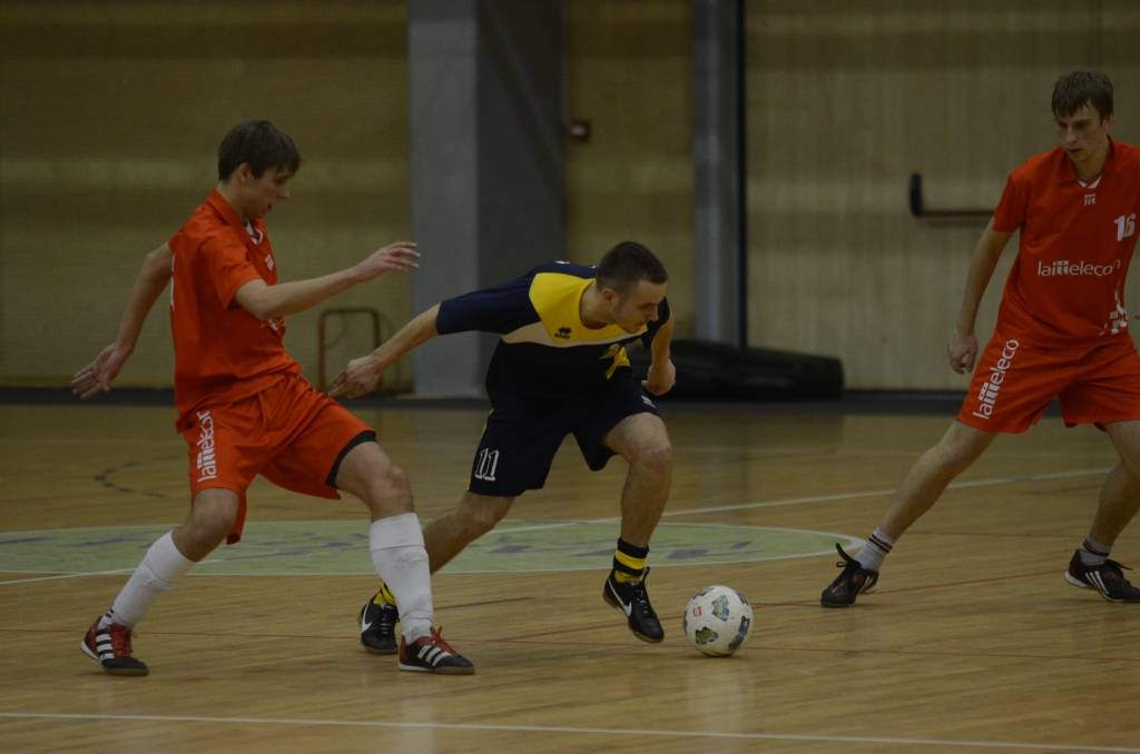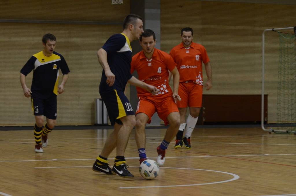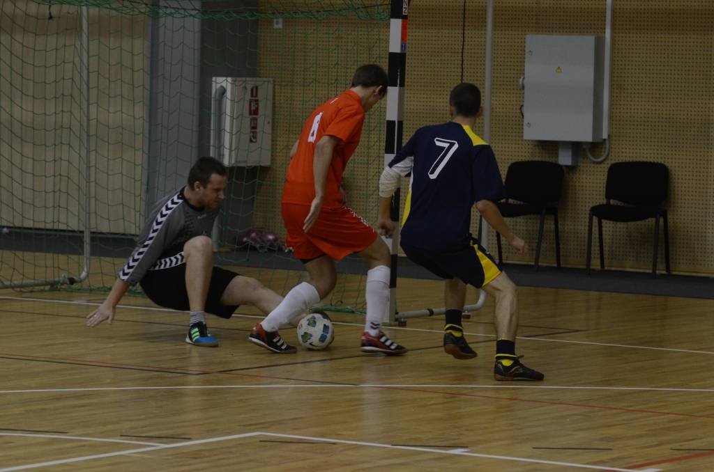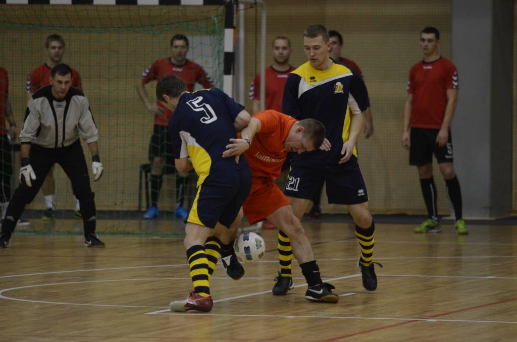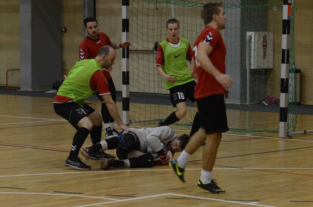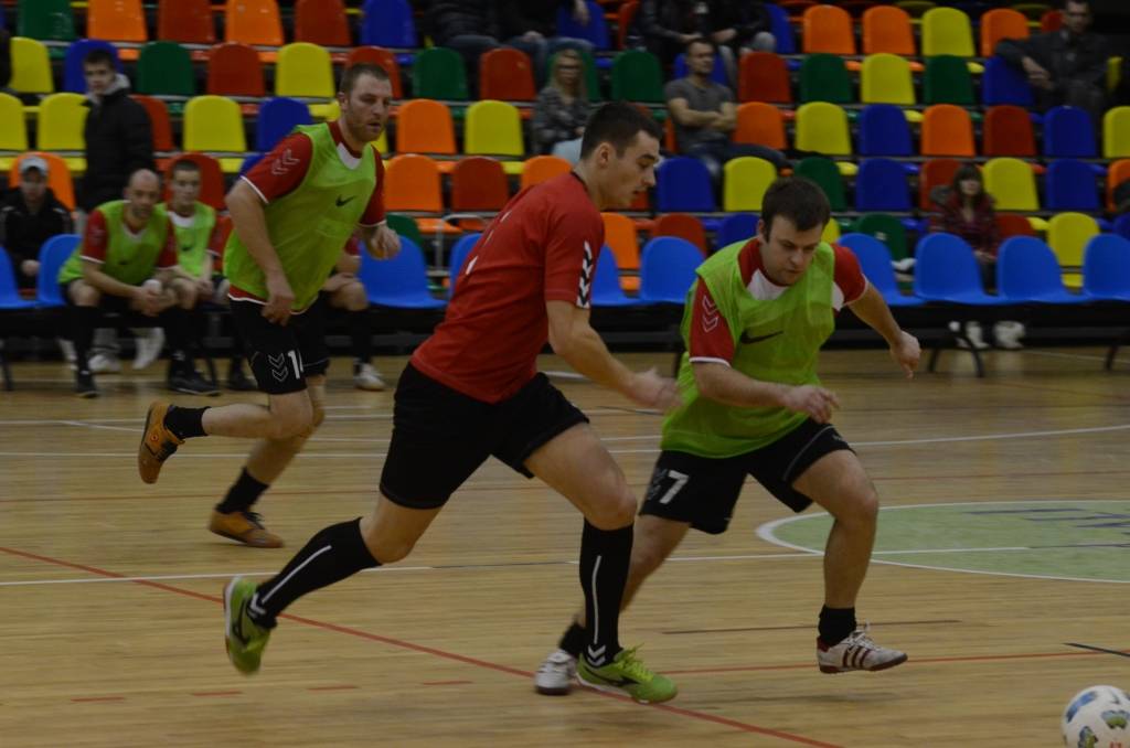 PAPILDINĀTS AR BILDĒM. Liepājas atklātā amatieru telpu futbola čempionāta piektajā kārtā svētdien, 18. novembrī, Liepājas Olimpiskajā centrā uzvarēja “Liepājas papīrs”, “Varavīksne”, “SLV Pluss” un “Galaksis N”.