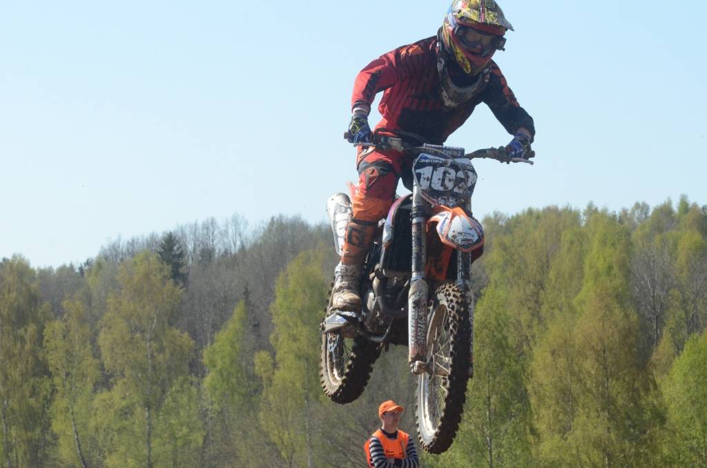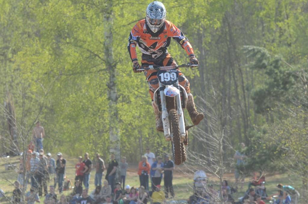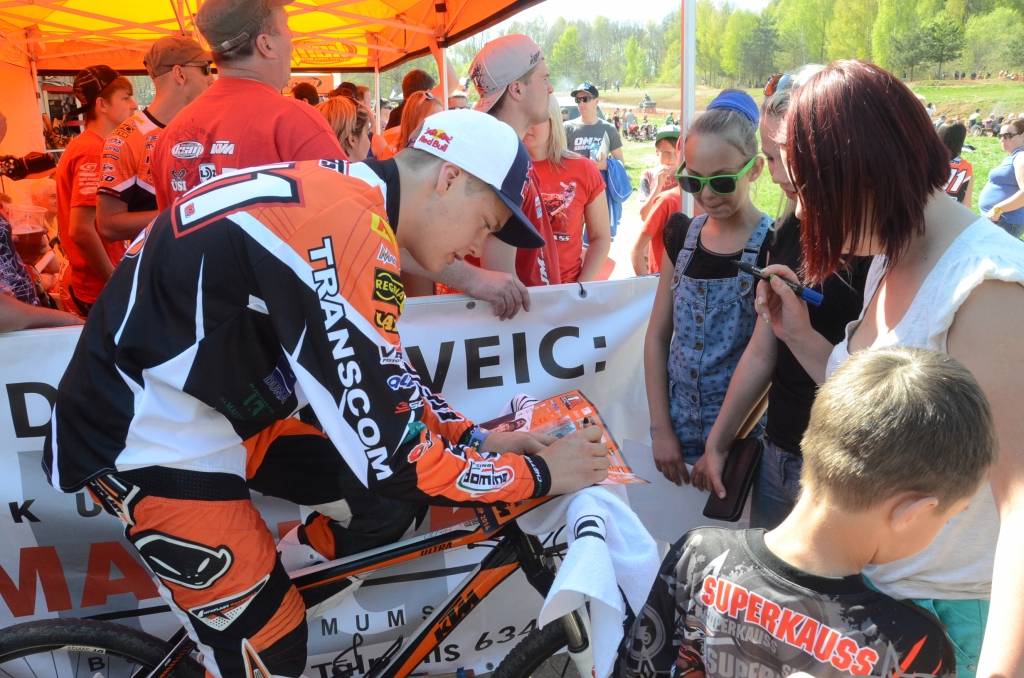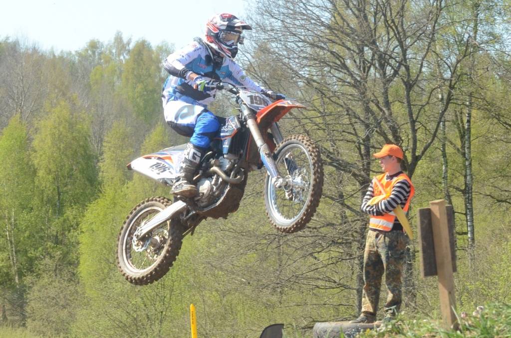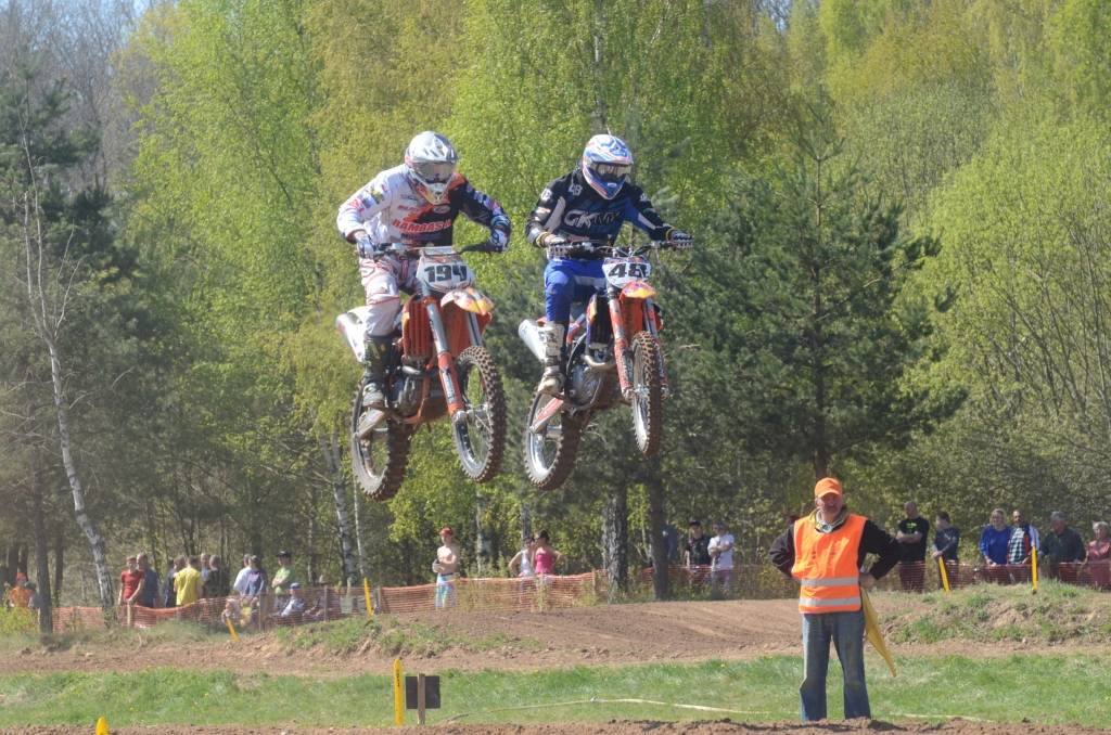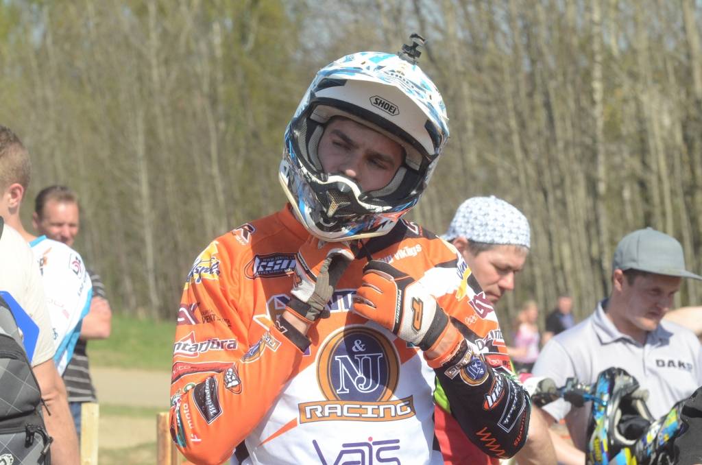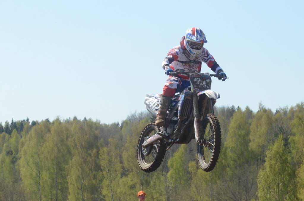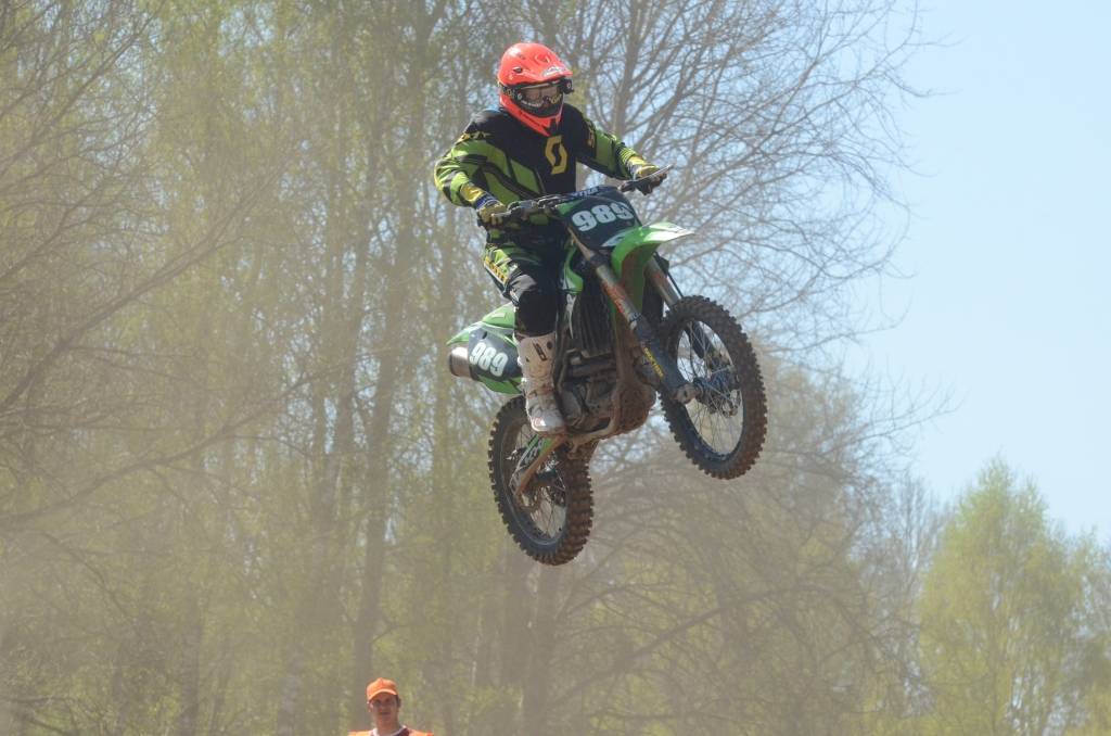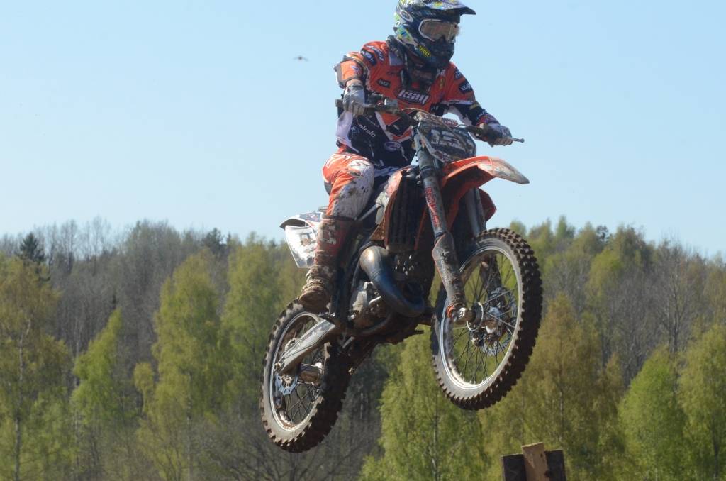 PAPILDINĀTS AR BILDĒM. Svētdien, 27. aprīlī, Misiņkalna mototrasē Aizputē ar Matīsa Karro pārliecinošu uzvaru noslēdzās Latvijas čempionāta motokrosā pirmais posms “MX1” klasē. Skatītājiem par lielu prieku “MX2” klasē otrajā braucienā pārliecinošu uzvaru izcīnīja kalvenieks Pauls Jonass.