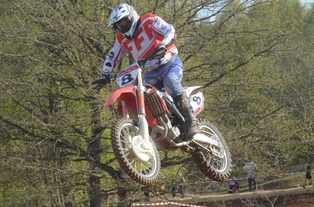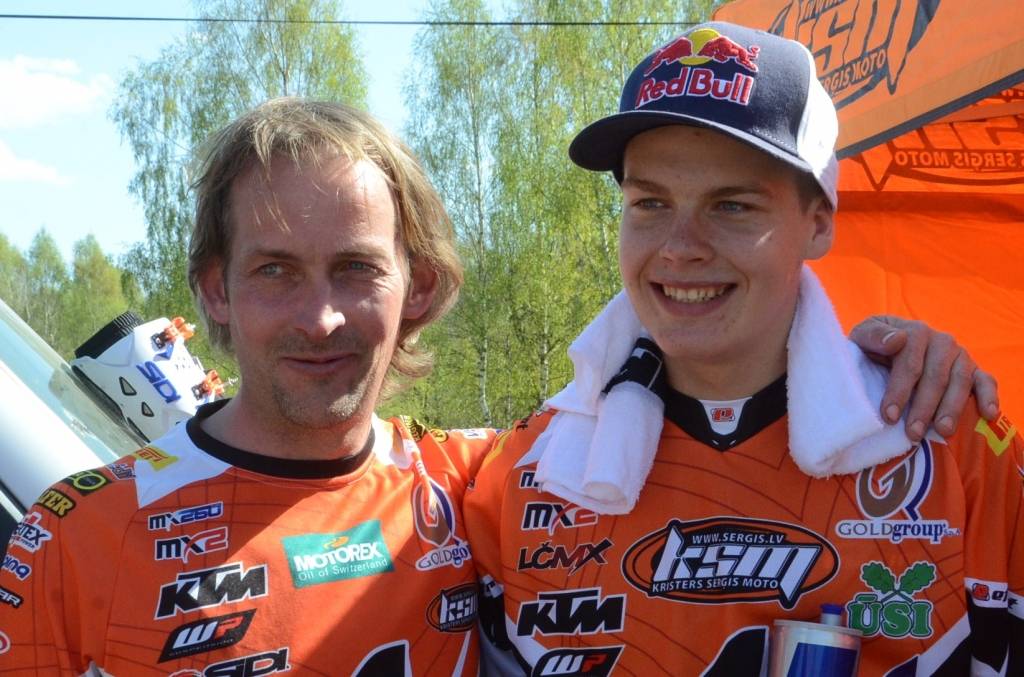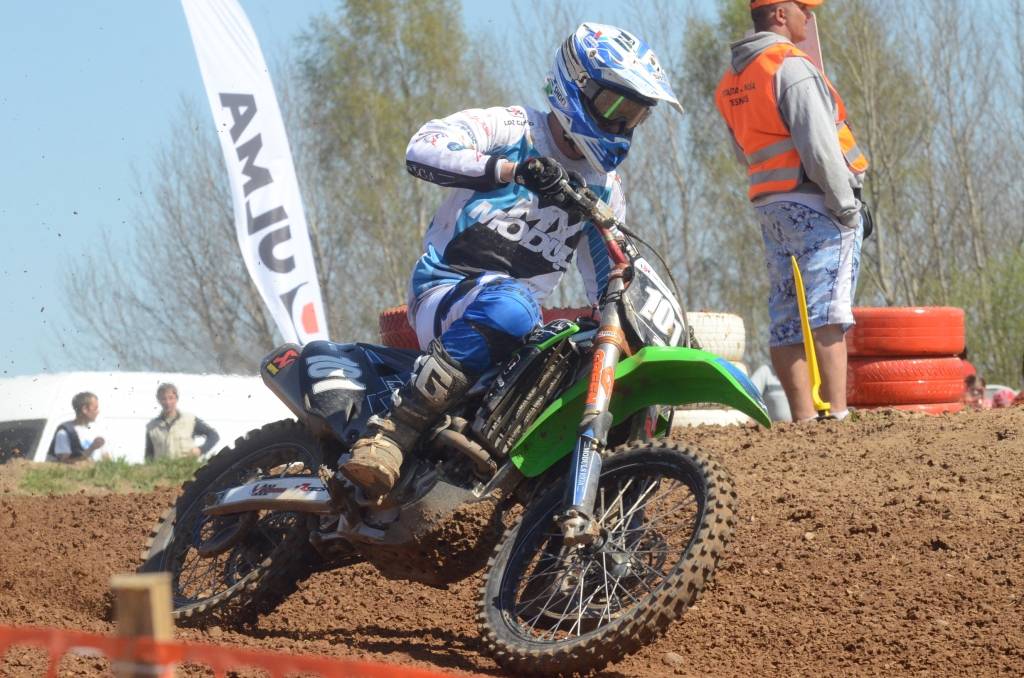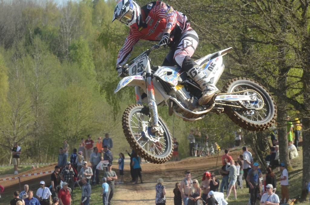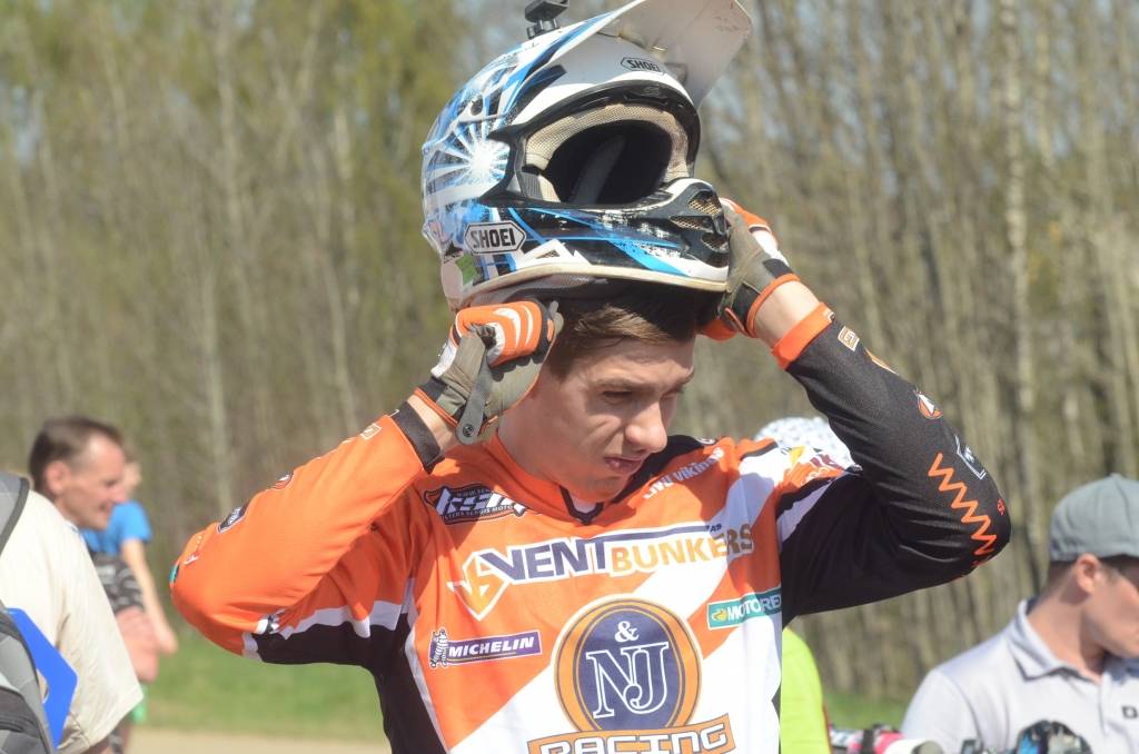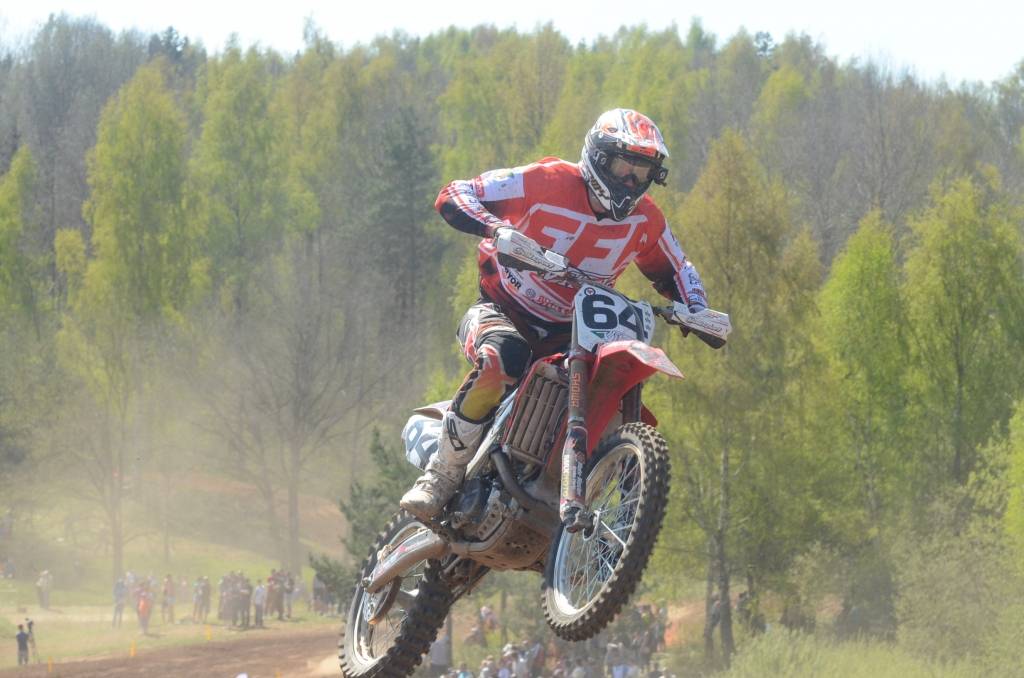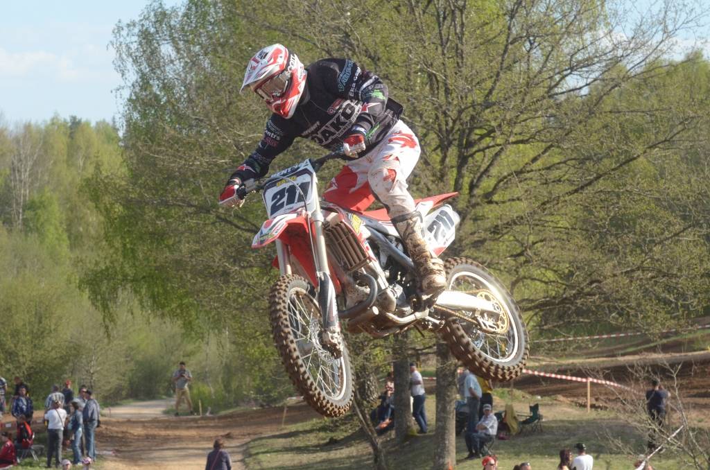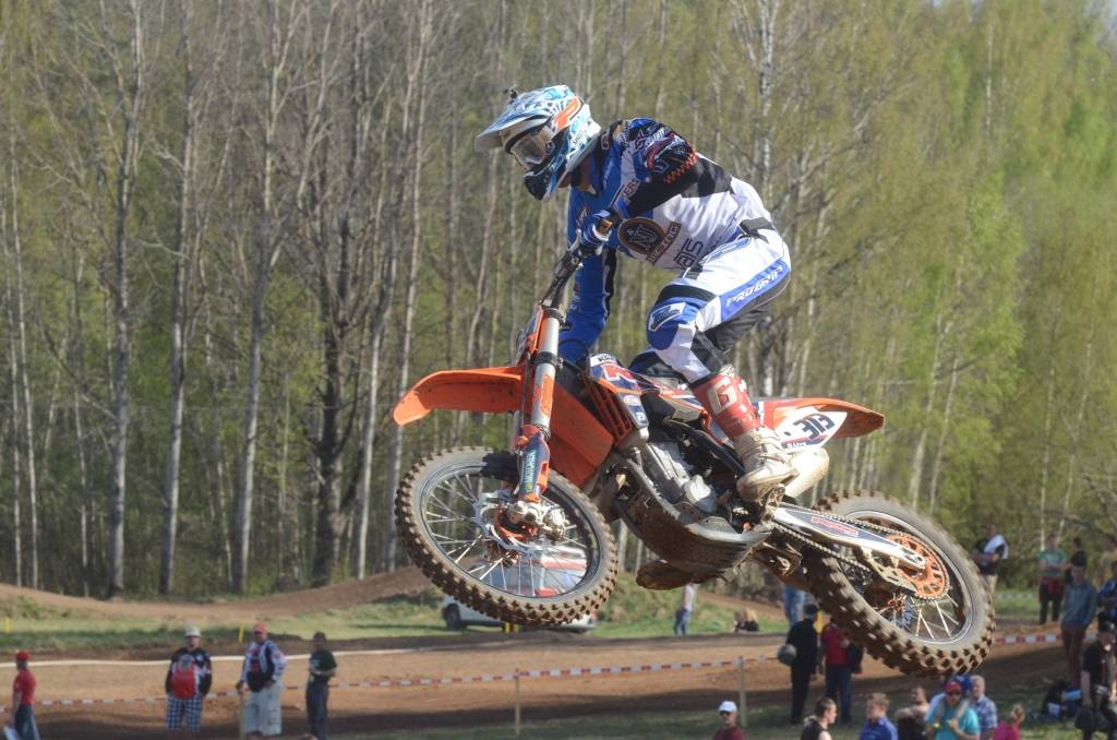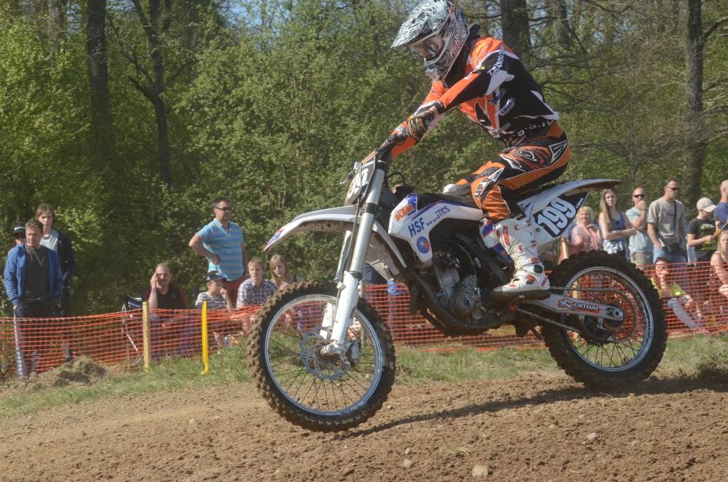 PAPILDINĀTS AR BILDĒM. Svētdien, 27. aprīlī, Misiņkalna mototrasē Aizputē ar Matīsa Karro pārliecinošu uzvaru noslēdzās Latvijas čempionāta motokrosā pirmais posms “MX1” klasē. Skatītājiem par lielu prieku “MX2” klasē otrajā braucienā pārliecinošu uzvaru izcīnīja kalvenieks Pauls Jonass.