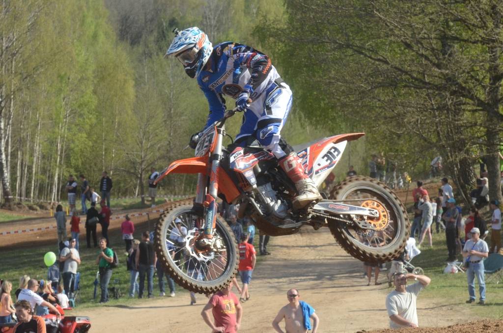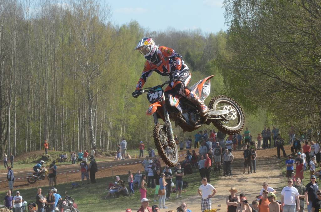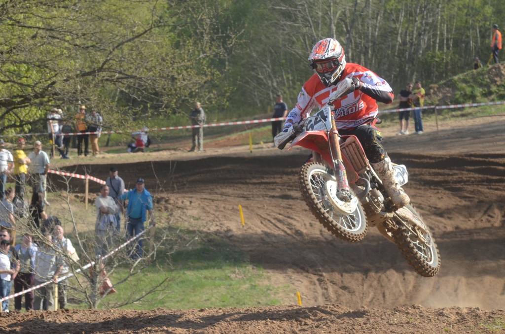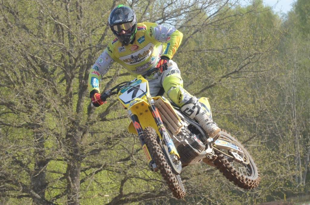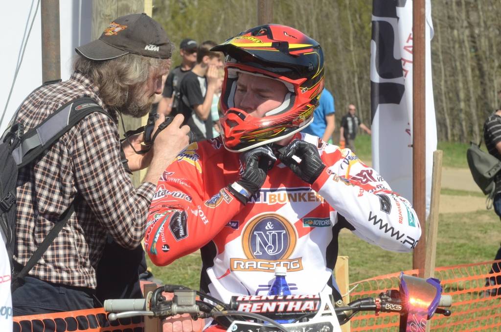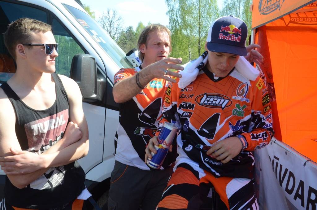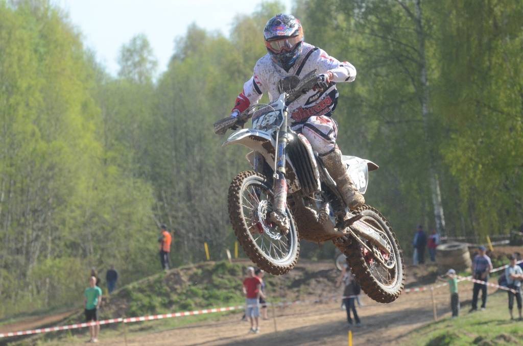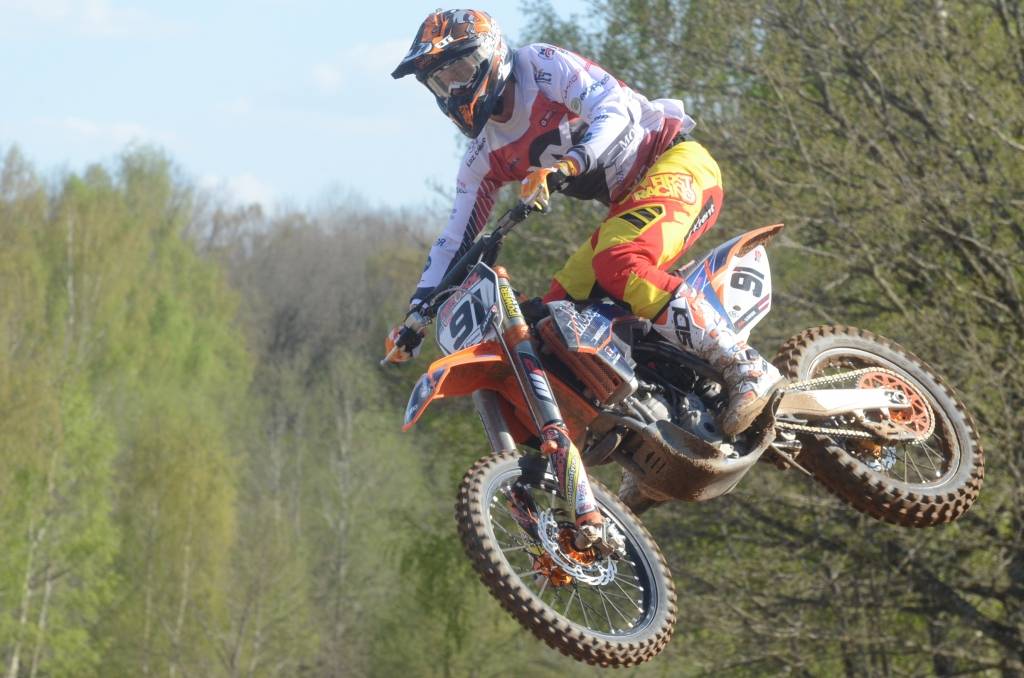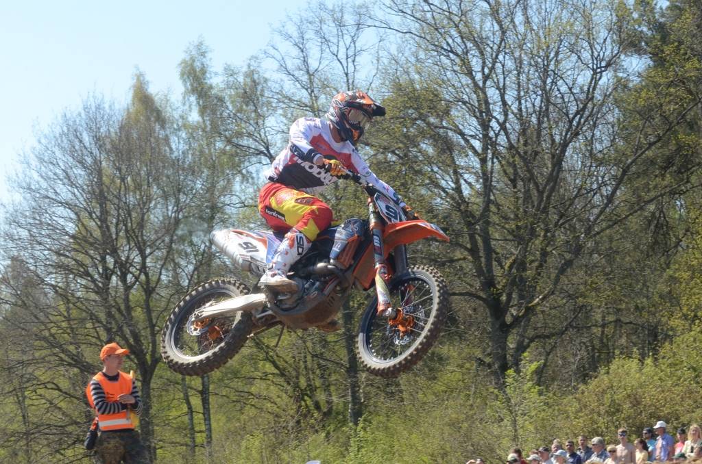 PAPILDINĀTS AR BILDĒM. Svētdien, 27. aprīlī, Misiņkalna mototrasē Aizputē ar Matīsa Karro pārliecinošu uzvaru noslēdzās Latvijas čempionāta motokrosā pirmais posms “MX1” klasē. Skatītājiem par lielu prieku “MX2” klasē otrajā braucienā pārliecinošu uzvaru izcīnīja kalvenieks Pauls Jonass.