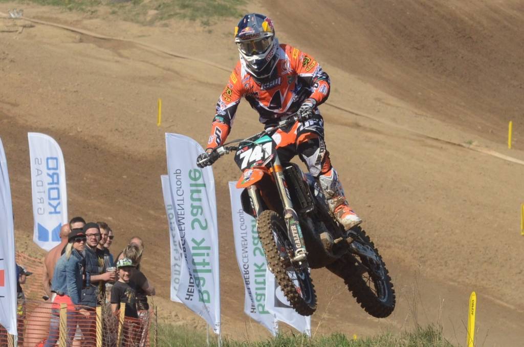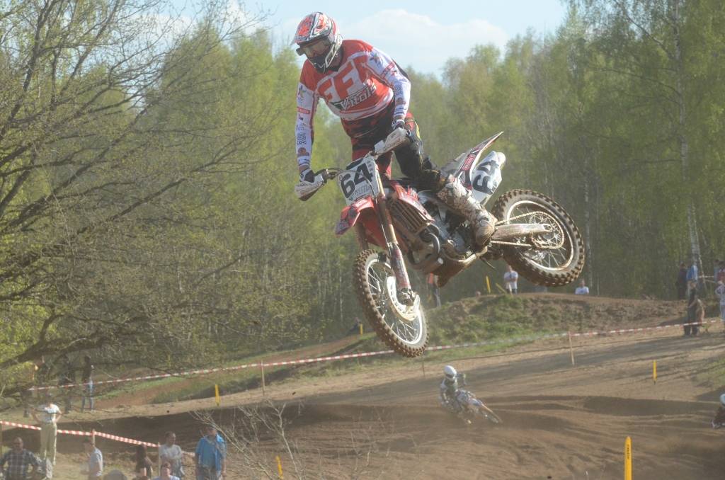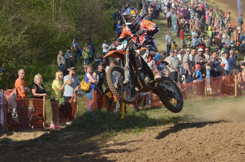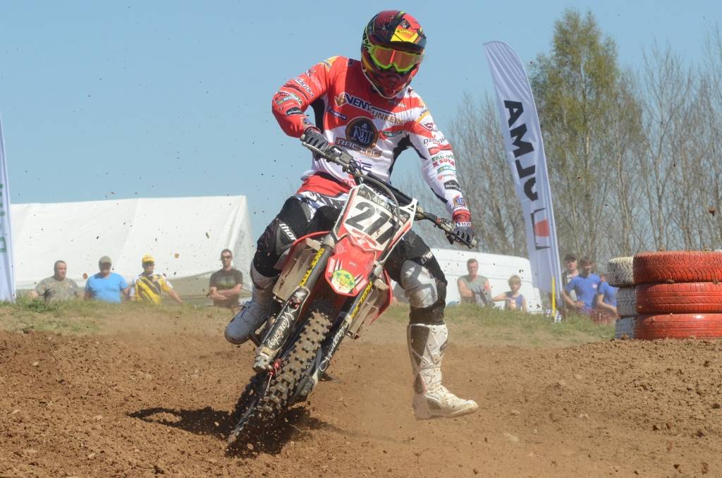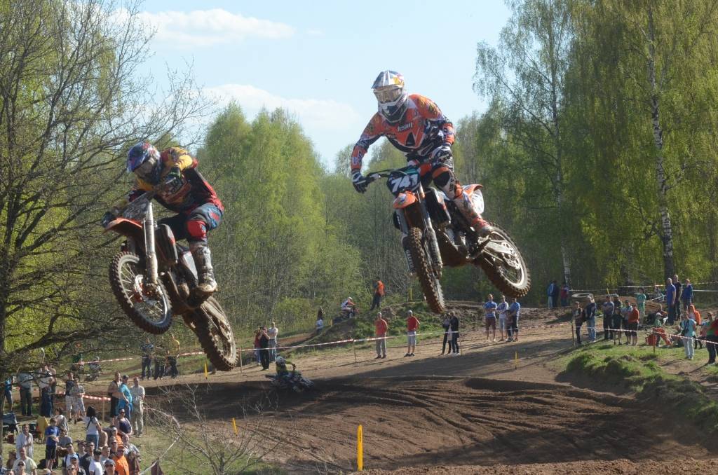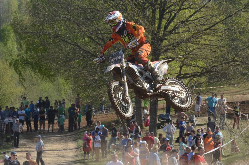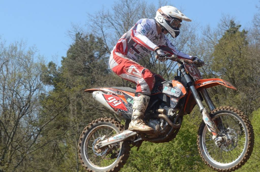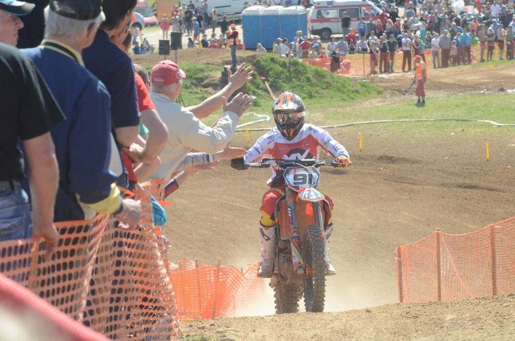 PAPILDINĀTS AR BILDĒM. Svētdien, 27. aprīlī, Misiņkalna mototrasē Aizputē ar Matīsa Karro pārliecinošu uzvaru noslēdzās Latvijas čempionāta motokrosā pirmais posms “MX1” klasē. Skatītājiem par lielu prieku “MX2” klasē otrajā braucienā pārliecinošu uzvaru izcīnīja kalvenieks Pauls Jonass.