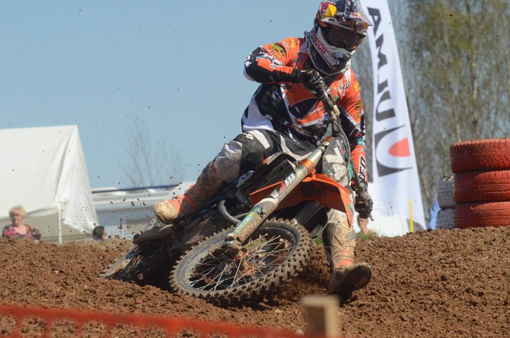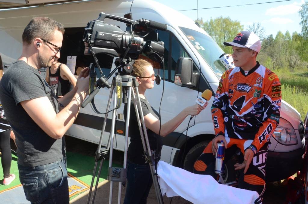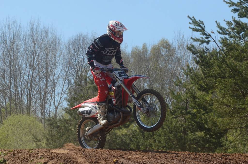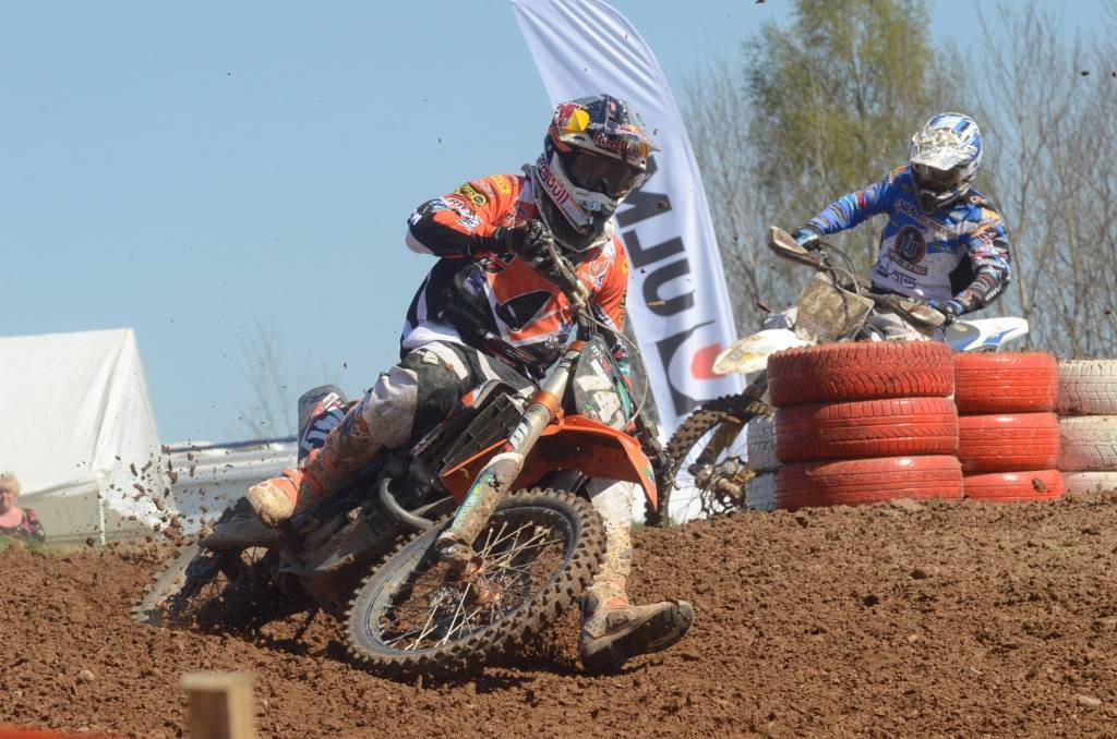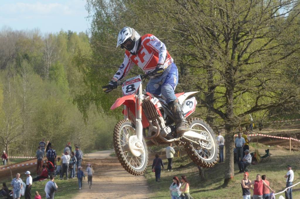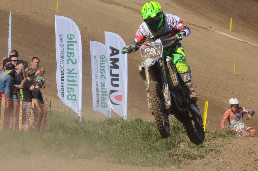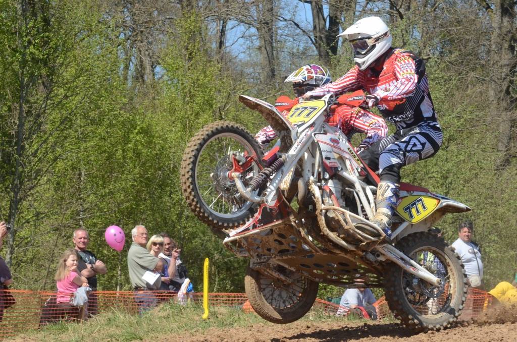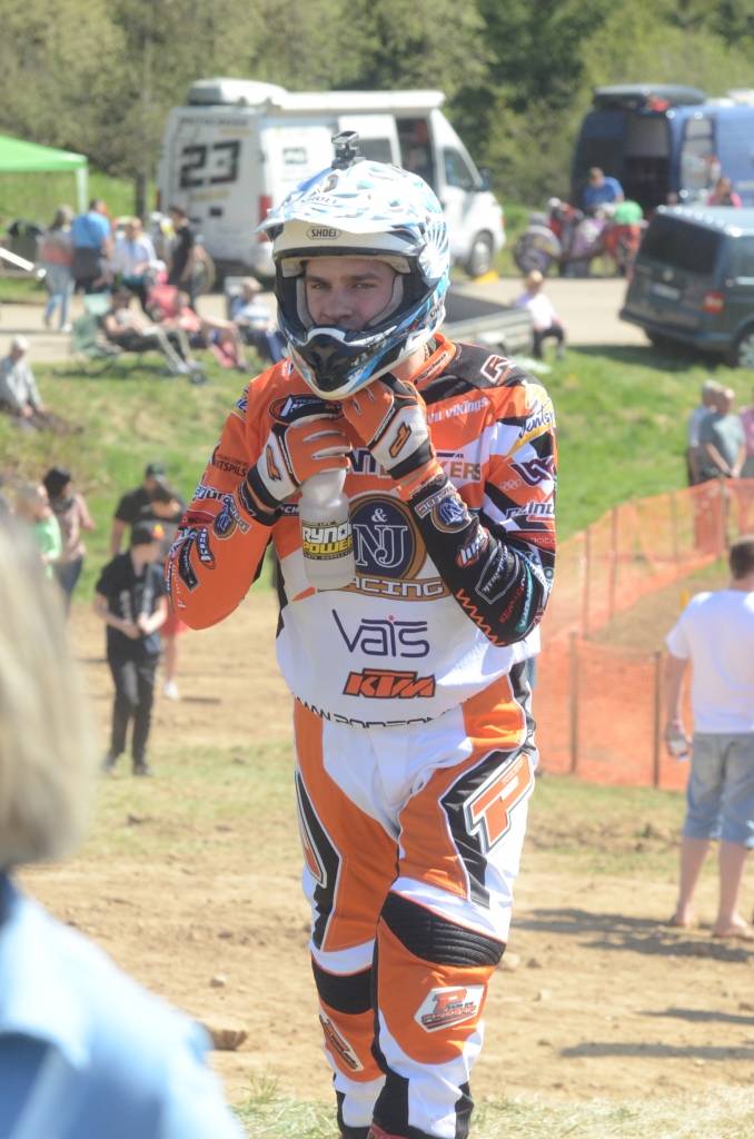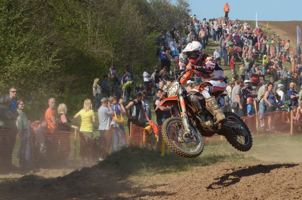 PAPILDINĀTS AR BILDĒM. Svētdien, 27. aprīlī, Misiņkalna mototrasē Aizputē ar Matīsa Karro pārliecinošu uzvaru noslēdzās Latvijas čempionāta motokrosā pirmais posms “MX1” klasē. Skatītājiem par lielu prieku “MX2” klasē otrajā braucienā pārliecinošu uzvaru izcīnīja kalvenieks Pauls Jonass.